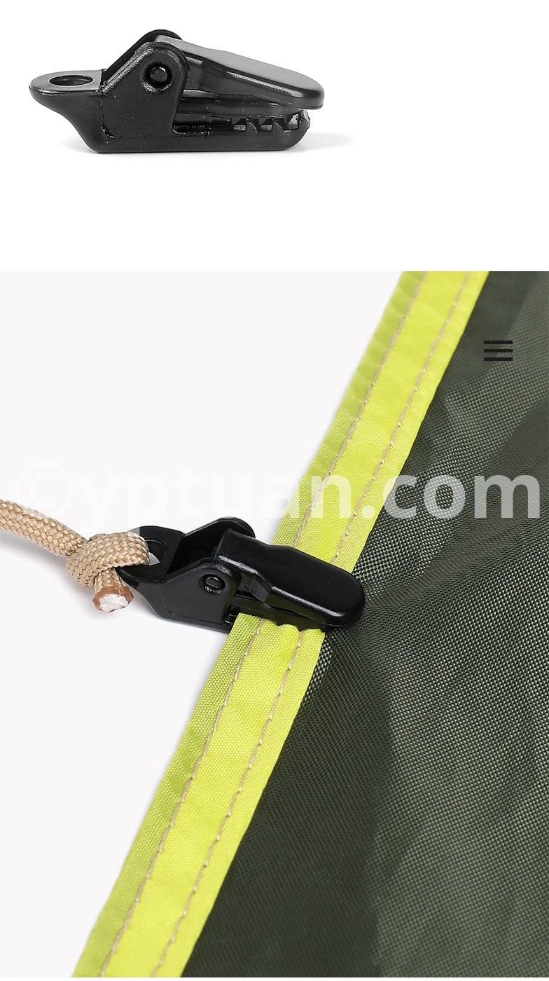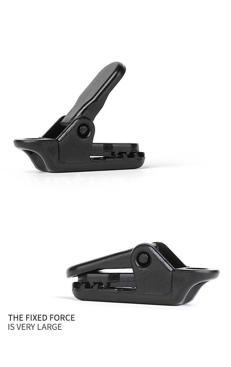 Provide drop shipping service (fast shipping) Name: Tent additional pull point crocodile clip outdoor camping canopy pull point hook tent windproof fixed clip Size: 33*10*13mm Net weight: 2g*10 Style: Mini tent clip Features: A mini and practical accessory clip, which can be used with military-standard paracords to fix canopies, reinforced tents, etc. The sophisticated design allows the teeth to engage more tightly. Material: PC, high friction (non-POM material, POM has self-lubricating properties and cannot hold things)