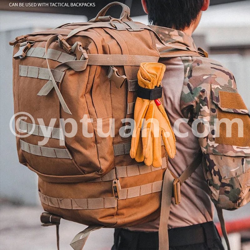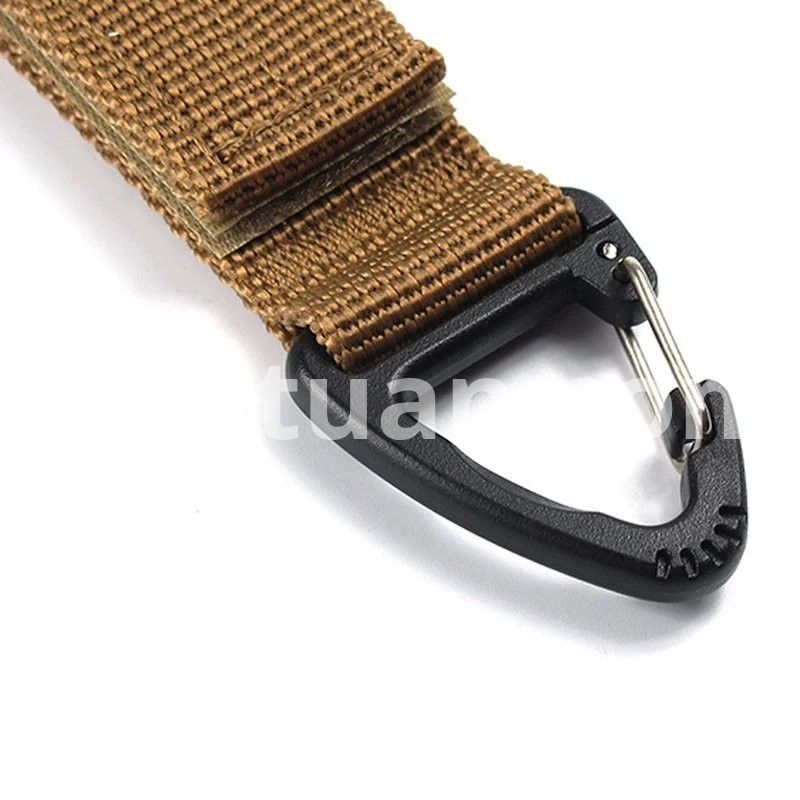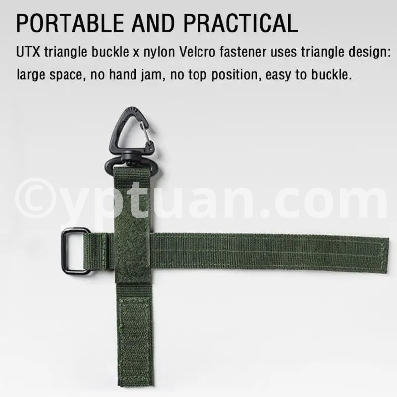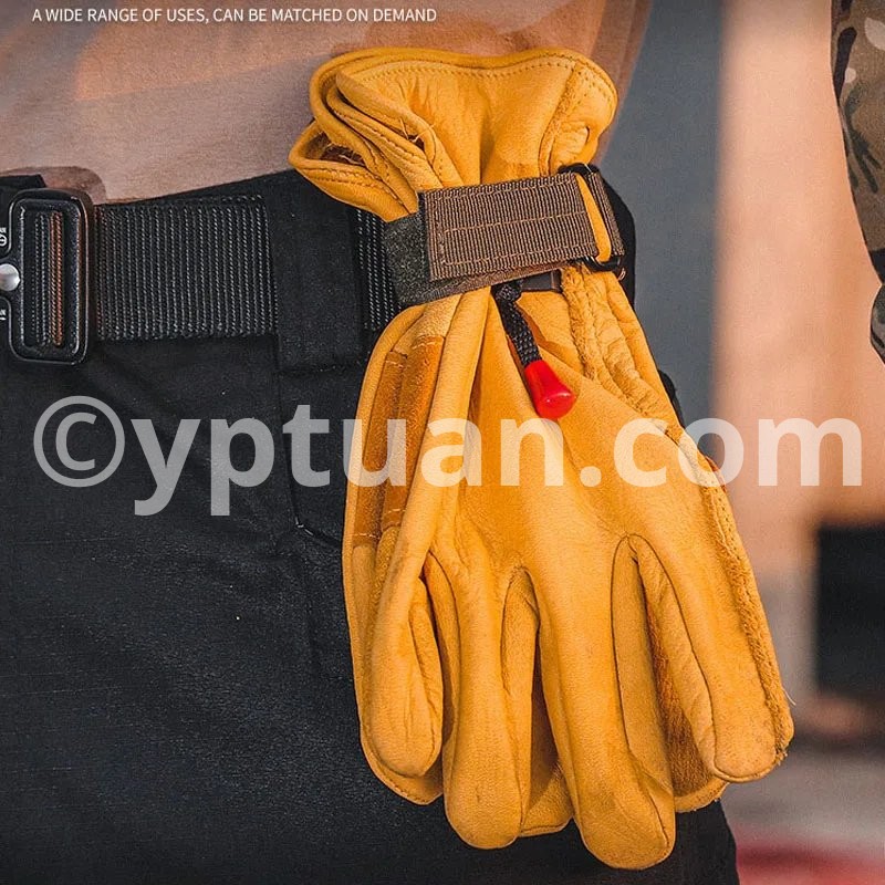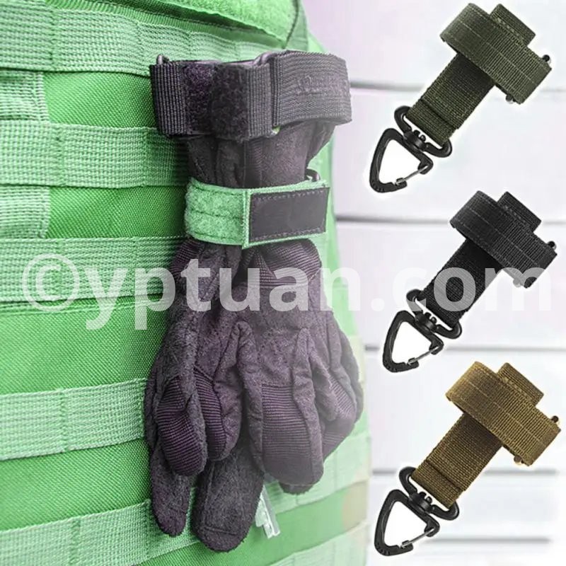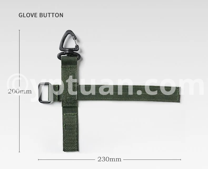 Name: Multifunctional glove storage buckle Material: Nylon ABS Color: Black /Green /Khaki Weight: 24g Size; 230*125mm (thickness 1.5mm) Features: Multifunctional use, can be used outdoors and at home, easy to carry Specifications: * 100% Brand New and Quality 1.Securely store your gloves when not in use 2.Can be attached to a belt, tactical vest or backpack 3.Feature a UTX Triangle Buckle on swivel 4.Can also be used to hold coils of rope / paracord Package Included: 1 x Keychain