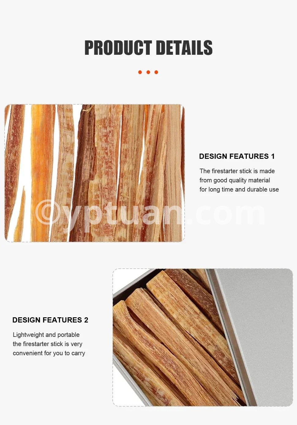 Features: PREMIUM RESIN-RICH FATWOOD – Our fatwood is meticulously sourced from high-resin pine trees, ensuring quick and superior ignition. Experience a strong, clean-burning flame without the hassle of soot, while enjoying a delightful, aromatic ambiance. Perfect for indoor fireplaces, outdoor fire pits, and camping adventures, this versatile fire starter is your reliable, sustainable solution for all fire-starting needs. BURNS IN ALL WEATHER – Trust WESTTUNE fatwood to ignite in any weather. Its exceptionally high resin content ensures ignition even when wet, making it your reliable choice for any setting. Whether you're starting a campfire in snowy landscapes or lighting a BBQ in the summer heat, WESTTUNE fatwood ensures consistent performance. Experience fire-starting confidence, rain or shine, with WESTTUNE. USE ANYWHERE: This portable and lightweight fire starter stick is an excellent choice for outdoor recreation, including camping, hiking, fishing trips or bonfires; For indoor use, store them near your fireplace or wood burning stove to easily heat the home Usage Instructions: 1. Use tools such as knives to create various sharpened states from the corners of this product. 2. Ignite the shaved place with a match or lighter. 3. The whole product can be used as a fire source. Notes 1. Do not use it indoors or in places with poor ventilation such as tents. 2. Do not use it near fire sources or flammable items. 3. Avoid using it in places with strong winds or danger. 4. Before use, carefully observe the surrounding environment and check whether it is safe. 5. Please keep this product out of the reach of children.