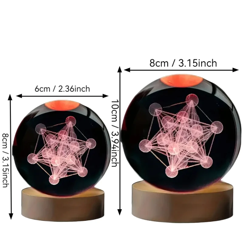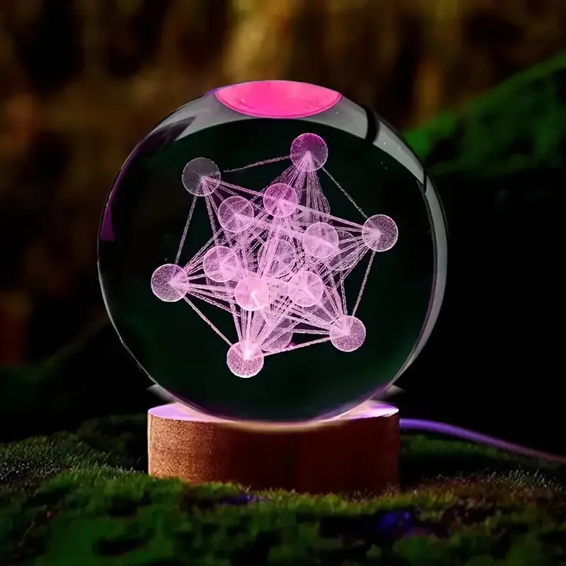 1pc 3D laser engraving Metatron, crystal ball night light, modern polished glass decoration, Christmas, Halloween, Thanksgiving, Valentine's Day ideal gift, suitable for family, friends, colleagues, home office decoration