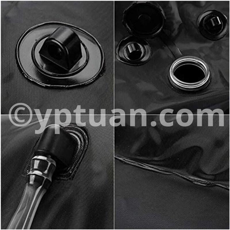 Quality and Reliable Material: the shower bag for camping is mainly made of PVC material, stable in structure, hard to break, deform or tear, waterproof and leak proof, safe and reliable to use for a long period Practical Shower Head: the camp shower bag contains shower heads, which feature an easy on/ off switch, allowing water flow from low to high, with nylon ropes, convenient for you to hang on a tree or shower Applicable for Many Occasions: the outdoor shower bag is widely applicable for camping, hiking, fishing, hunting, rafting, climbing, traveling, beach and other outdoor activities