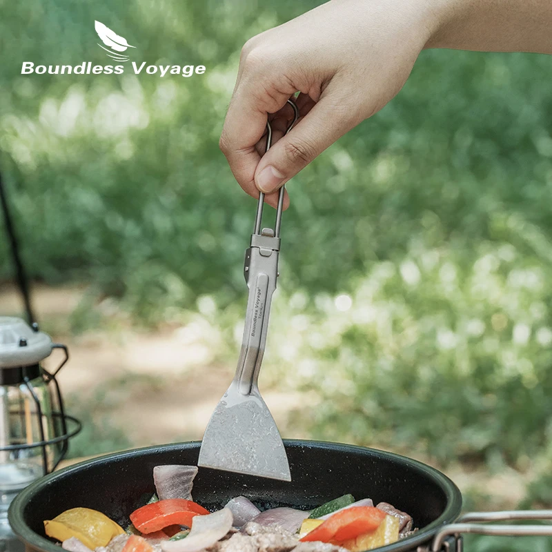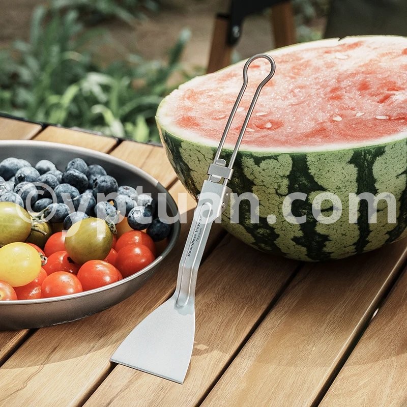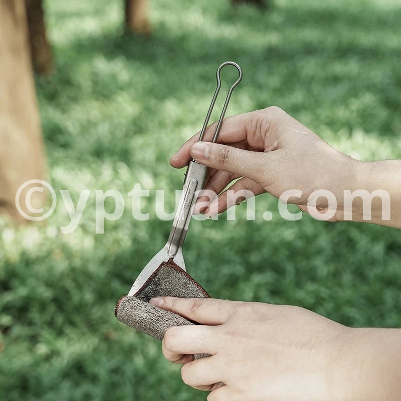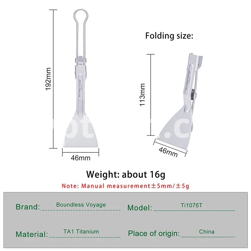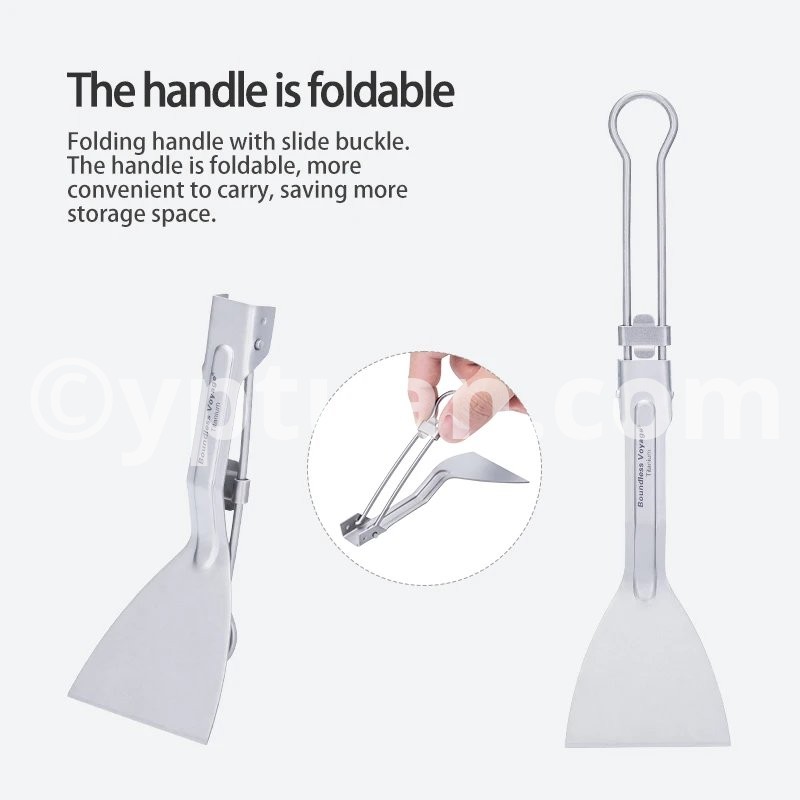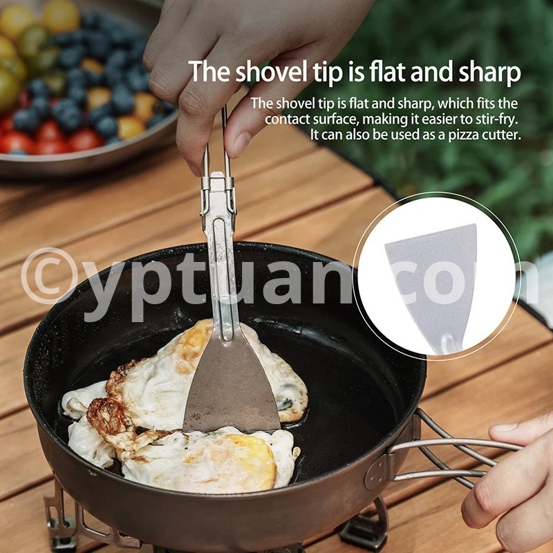 Made of premium titanium - it is lightweight, never rust, anti-corrosion from acid and alkali, scratch-resistant and heat-resistant. Molding in one - The shovel is molding in one design, it is no need to worry about the fracture of the welded joint after long-term use, more durable. Folding handle with slide buckle - The handle is foldable, more convenient to carry, saving more storage space. And there is also a sliding buckle on the handle, slide down to lock and fix the handle when in use, and slide up to unlock when storing. Ideal for cleaning the food stuck to the bottom of the pans/pots (coated pans may be scratched), and no longer worry about food sticking to the pans/pots. The shovel tip is flat and sharp, which fits the contact surface, making it easier to stir-fry. It can also be used as a pizza cutter. Perfect For Travel & Daily Use - They are not only just good for outdoor camping backpacking picnic, with a drawstring bag that makes it easy to carry during travel. You can also use them at home kitchen or carry them to wherever you like.