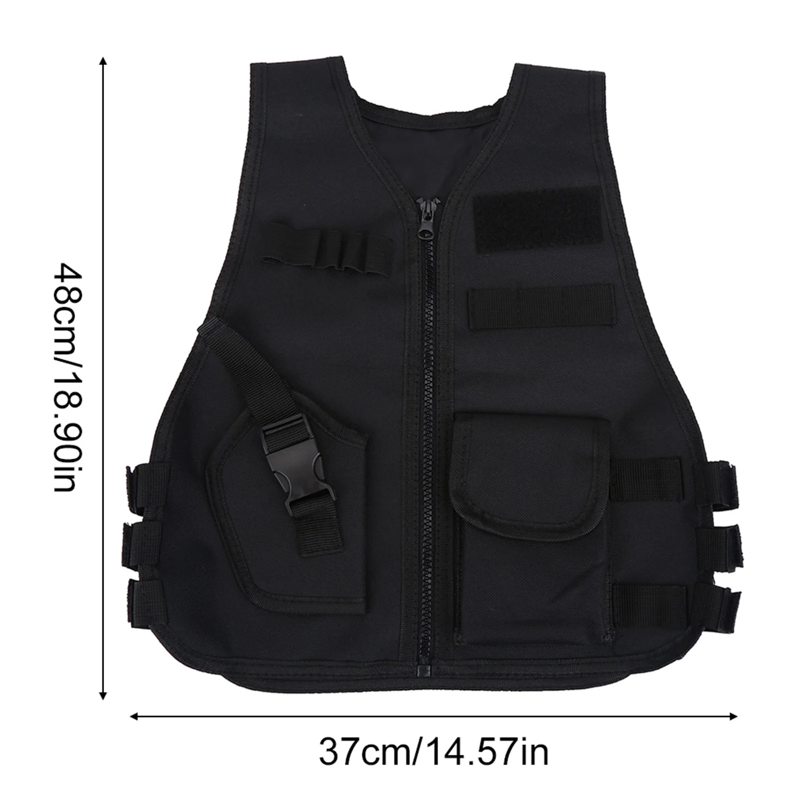 Specification: Features: Adopting 600D oxford cloth, wear-resistant, tear-resistant and durable. V neckline, free waist and adjustable side hook&loop straps make it can fit many children. Multiple pouches on the front and side can store many available accessories, such as map, money, etc. With a large number of molle straps on vest's surface, you can hang many necessary or applicable devices. We have two size(S/L) for you to select, there must be one suitable for your children. An ideal vest for outdoor activities, such as hunting, "Rip the nametag off", and so on. It will add more happiness for your games. Specification: Condition: 100% Brand New Material: 600D Oxford Cloth Color: Black Size: S, L(Optional) S Size(L x W): Approx. 39 * 36cm / 15.4 * 14.2in L Size(L x W): Approx. 48 * 37cm / 18.9 * 14.6in S Suitable for body height range of 90 - 130cm / 35.4 - 51.2in L Suitable for body height range of 130 - 160cm / 51.2 - 63.0in Weight: Approx. 288 - 335g Packing List: 1 x Children Tactic Vest