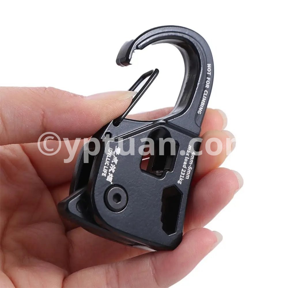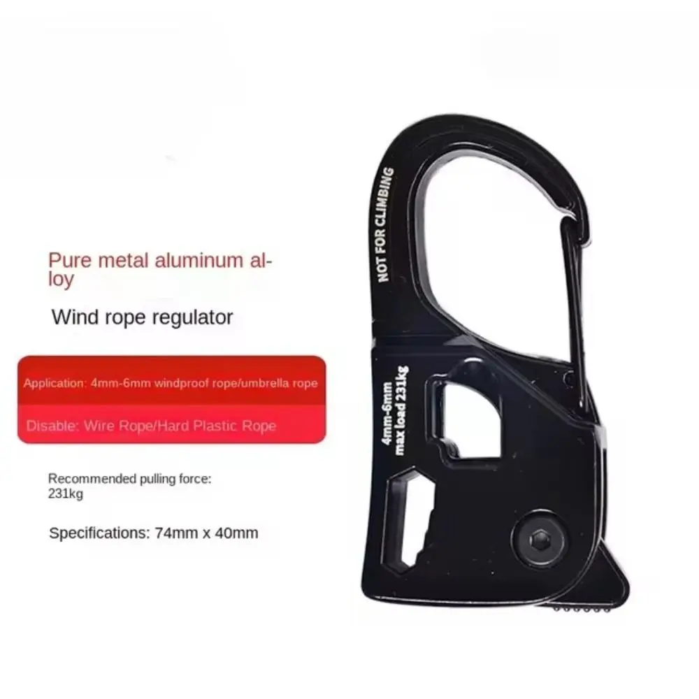 Item Name: Rope Tensioner Material: Alloy Features: Lightweight, Portable, Easy to Use, Widely Used Application:4mm-6mm windproof rope/umbrella rope Disabled:Wire Rope/Hard Plastic Rope Recommended pulling force:231kg Weight:59g Size Detail:74x40mm(2.91x1.57in) Package Includes:1Pc Rope Tensioner Convenient one-touch rope release mechanism. stable mechanical structure for secure grip. made from durable aluminum alloy through die-casting manufacturing. lightweight and exceptionally strong. ideal for daily use, outdoor camping, hiking, and more.