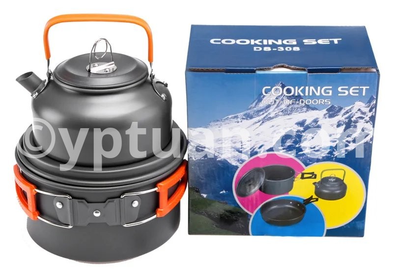 Camping Cookware Kit Outdoor Aluminum Lightweight Equipment Camping Cooking Kit For Traveling Trekking Hiking Supplies