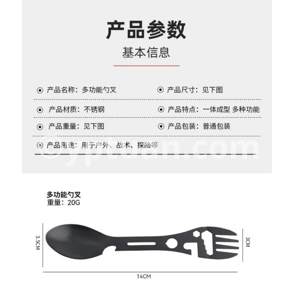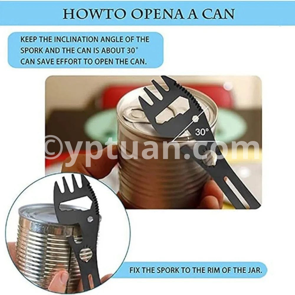 This compact 5-in-1 set includes a fork, spoon, and opener, making it an essential tool for any camping or hiking trip.