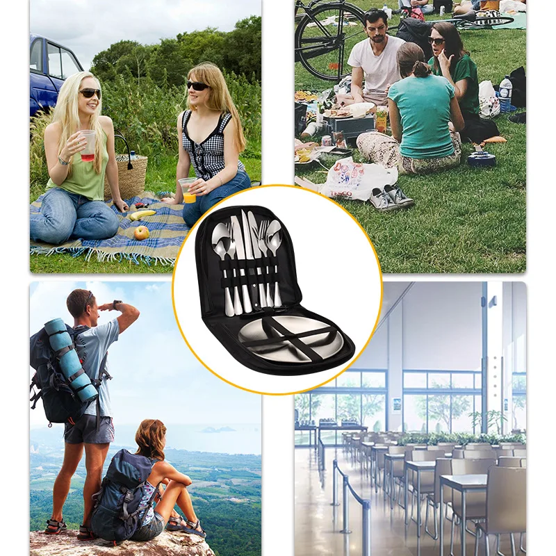 Quantity: 10/20 pieces set Material: stainless steel Usage: Outdoor camping, tourism, gatherings Precautions for use ❌ Avoid contact with strong acids/alkalis (such as lemon juice, vinegar, bleach) to prevent corrosion. ❌ Do not soak in salt water or soy sauce for a long time, as it may cause rust spots. ❌ Do not scratch with hard objects to avoid leaving scratches. ❌ Avoid high-temperature dry burning (such as empty burning stainless steel pots), as it may deform or oxidize. When cleaning the storage bag, do not put it in the washing machine. Just wipe it with a wet wipe Daily cleaning and maintenance Correct cleaning method ✅ Hand washing is the best option Rinse immediately after use to prevent food residue from drying up (especially salty and acidic foods). Gently scrub with neutral detergent and a soft cloth/sponge to avoid scratching the surface with steel wire balls. Slight rust spots: Wipe with white vinegar or lemon juice and rinse clean. Stubborn stains: Gently scrub with baking soda paste (baking soda+water). Long term storage requires moisture resistance After drying, place in a ventilated area and apply a small amount of edible oil to prevent rust (clean before use).