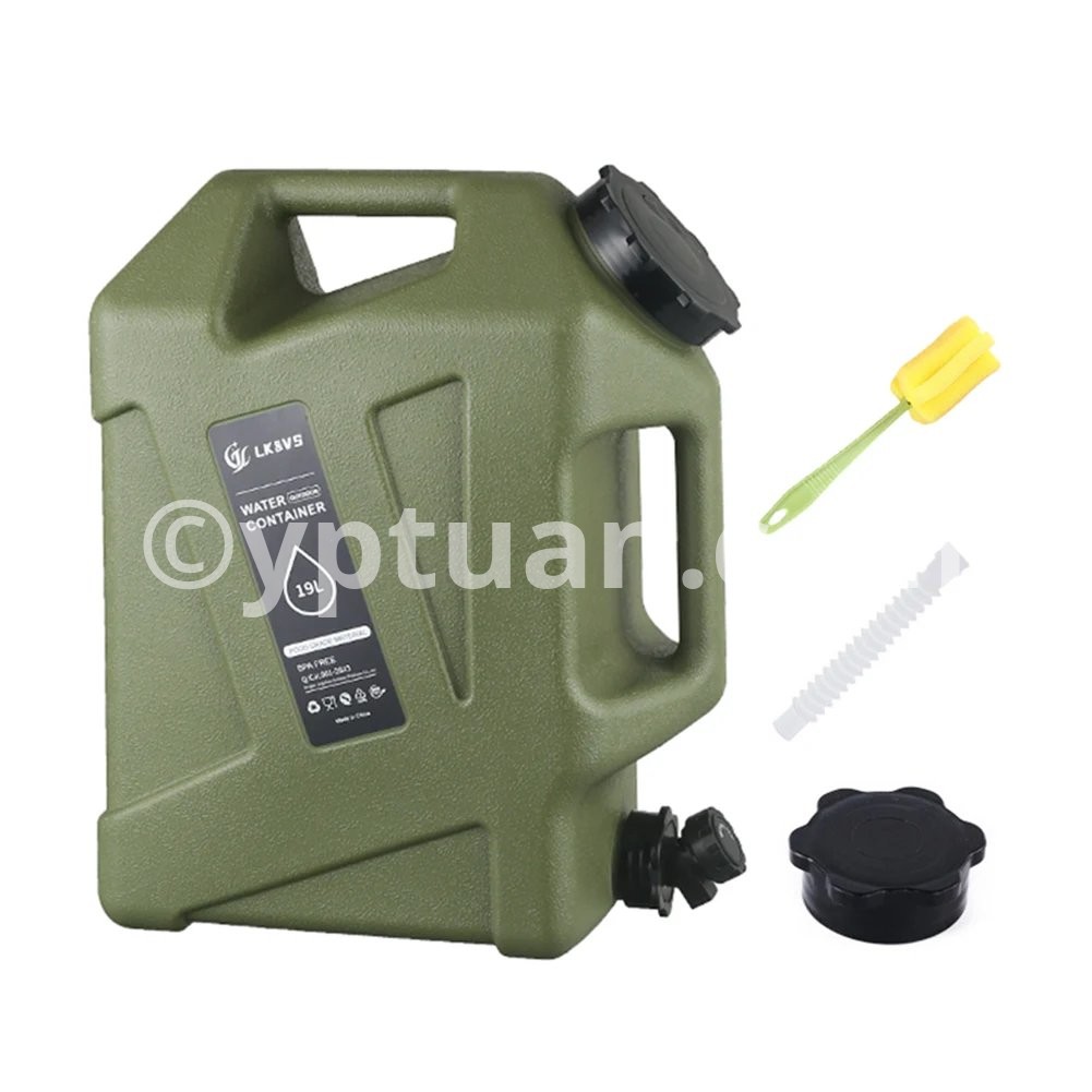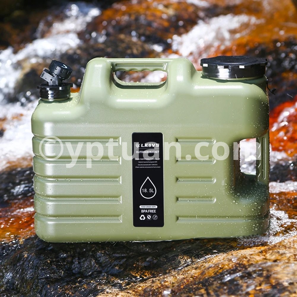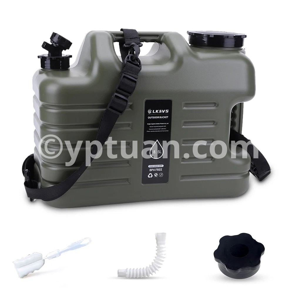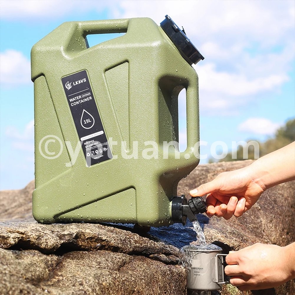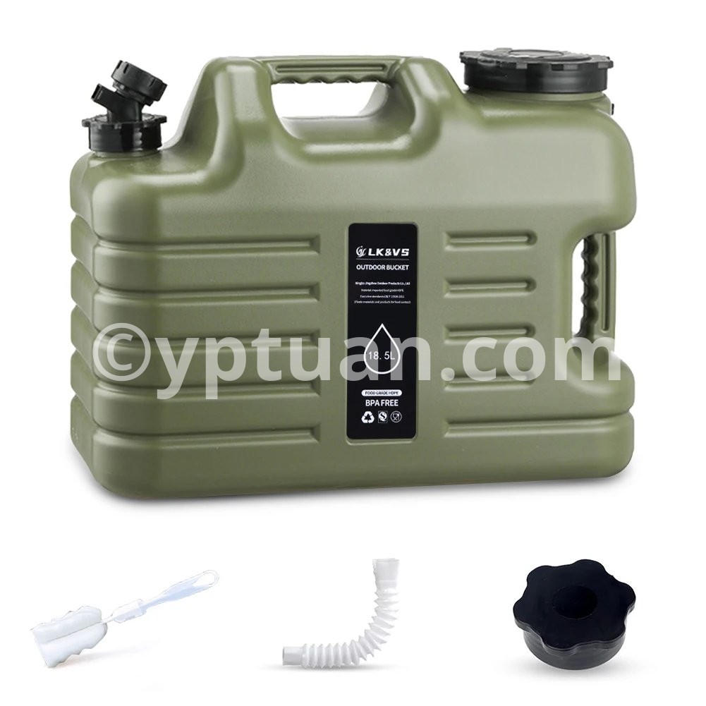 5 Gallon Water Jug with Spigot Camping Water Container Leak-Proof Water Storage Container Large Capacity Portable Water Tank BPA Free for Outdoor Camping Features: 1.Reliable Water Storage: The 5-gallon water jug ensures you have ample hydration for camping and hiking adventures, keeping your water needs covered. 2.Sturdy camping water container: Made from sturdymaterials, this camping water container is designed to withstand harsh outdoor conditions, making it an essential item for your camping expeditions. 3.Leak-Proof Design: With genuine leak-proof functionality, trust the large portable water tank to secure your water and prevent wastage during outdoor excursions. 4.BPA-Free Construction: Prioritizing health and safety, this water storage container is crafted from BPA-free materials, ensuring your water remains pure and contaminant-free. 5.Portable Emergency Essential: Whether on a road trip or in a crisis, this BPA-free portable water container is compact and easy to transport, offering reliable hydration wherever your outdoor activities take you.Specification: Origin: Mainland China Capacity: 18.5L Material: Food grade PE, BPA free Weight: 840g Diameter of barrel mouth: 9cm Note: Due to different monitor settings and lighting conditions, the actual color of the item may vary slightly from the pictures. Thanks for your understanding! Please allow a 1-2 cm difference in measurements due to manual measuring.