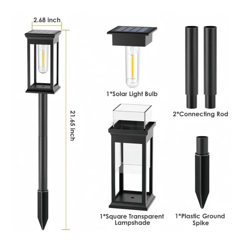 [Unique & Brighter Pathway Lights] The solar pathway lights feature elegant transparent lens of minimalist design, a bit more beautiful, modern and clean looking above average solar lighting. An antique style vintage filament bulb inside the lamp and the reflective pattern on the ground really adds style and also sets them apart from other solar lights. High-powered filament leds also make for brighter shining, emitting a pretty warm white color and enhance your landscape lighting. [Faster Charging & Longer Lasting Solar Pathway Lights ] The solar pathway lights with upgraded bigger monocrystalline solar panel located on the top increase conversion rate and shorten full charging time to only 4-6 hours. The solar garden lights adopting built-in larger battery capacity will stay lit up to 12 hours after fully charged. Garden lights solar powered really last the whole night with gorgeous beauty. Waterproof & Durable Solar Light : The solar landscape lights have 2 adjustable heights with tall additional option, a bit higher than most path lights for more look. Solar outdoor lights pathway charactered by IP65 waterproof grade and seamlessly connected parts could hold up well in the rain, snow, frost or sleet. Anti-rust hard ABS material can maintain long-lasting life and durability of the solar path lights, providing you years of enjoyment. Ideal outdoor solar lights for yard. [Energy-Efficient and Solar Powered Landcape Lighing] These Solar Path Lights are 100% solar-powered and energy-efficient, thanks to a high-conversion monocrystalline silicon solar panel that converts sunlight into electricity. It takes only 4-6 hours of direct sunlight to fully charge the pathway light. With no need for electricity, there are no associated bills.