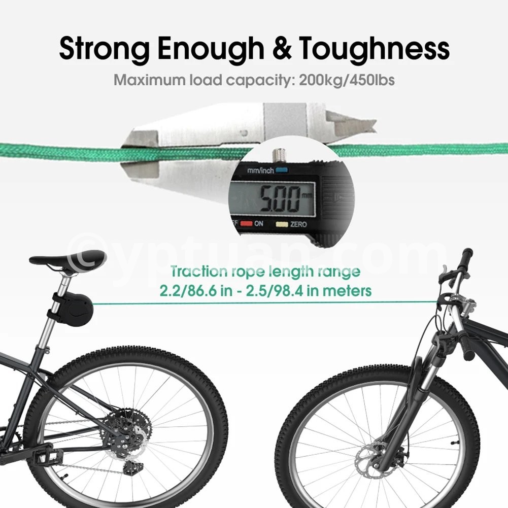 Retractable Bicycle Tow Rope Bike Towing System Rope Bike Parent-Child Pull Rope Bicycle Pull Traction Strap Cycling Accessories Features: 1.Effortless Towing: Simplify Your Ride: This retractable bicycle tow rope offers an easy solution for towing your child up hills, making parent-child cycling trips more enjoyable. Its straightforward design, consisting of tubes and ropes, allows for a hassle-free setup, ensuring your adventures are about bonding, not about the struggle. 2.Adjustable Traction: Customized Comfort: Equipped with a retractable towing system, this bicycle traction rope enables you to effortlessly pull your child up and down terrain while allowing them to steer and balance their own bike. The adjustable length accommodates various trail conditions, making it easy to navigate bumps or puddles together. 3.Safety First: Secure Attachment: Designed with a thick, round elastic band at the end, featuring double hooks, this portable bike trailer rope securely attaches to the post beneath the seat, offering a safe and straightforward method of towing. This design prioritizes your child's safety, giving you peace of mind during your cycling adventures. 4.Lightweight and Portable: Our bike towing system rope is notably light and compact, making it easy to carry with you on any trip. It fits comfortably in a large pocket or backpack, ensuring you're always prepared for spontaneous parent-child rides, without the burden of heavy equipment. 5.Enhanced Bonding Experience: By facilitating easier uphill rides and enabling shared cycling experiences, this bike parent-child pull rope not only improves your outdoor adventures but also strengthens the bond between parent and child. It's an innovative tool that transforms cycling into an opportunity for creating lasting memories. Specification: Origin: Mainland China Material: Plastic Color: Black Note: Due to the different monitor and light effect, the actual color of the item might be slightly different from the color showed on the pictures. Thank you! Please allow 1-2cm measuring deviation due to manual measurement.