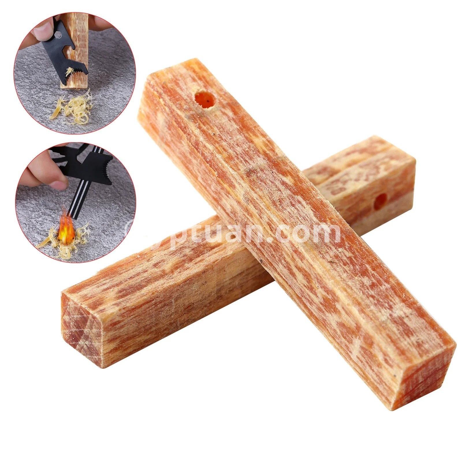 This is a convenient kindling material for camping. Made of pine wood rich in rosin, it can be ignited quickly and easily.