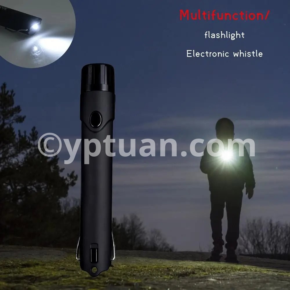 2-in-1 Electronic Flashlight Whistle Referee Tones Whistle Waterproof Emergency Whistle For Outdoor Survival Sports Events Bullet Points: 1.Multi-function Flashlight: 2 in 1 electronic whistle with light. This will be a life-saving signal whistle! Movies can check both at the same time. 2.Compact/Waterproof IP54: Lightweight and portable, easy to carry. Easy to use. No need to worry about rain. You can also put it in a box and tie the whistle to a belt or shoulder strap for quick and easy use in emergency situations. 3.Product Use: Suitable for sports (outdoors, sports events), emergency alarms, assembly warning orders in public places. Tips for traffic commands, military training, pet training, etc.: Holding the whistle around the horn can increase the volume. 4.Please Note: This product is not a toy. Don't let the whistle sound close to your ears, it will damage your hearing. Do not let children play or use. Specification: Size: about 118*23*20mm/4.64*0.9*0.79in Weight: about 35g Colour: black Use: sports (outdoors, sports events), emergency alarms, assembly warning orders in public places. Tips for traffic commands, military training, pet training, etc. Holding the whistle around the horn can increase the volume. Packing List: 1*Electronic Flashlight Whistle Note: This product is not a toy. Don't let the whistle sound close to your ears, it will damage your hearing. Do not let children play or use.