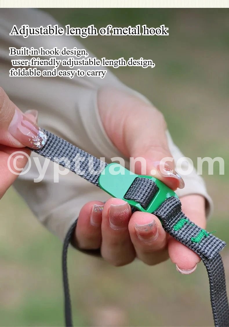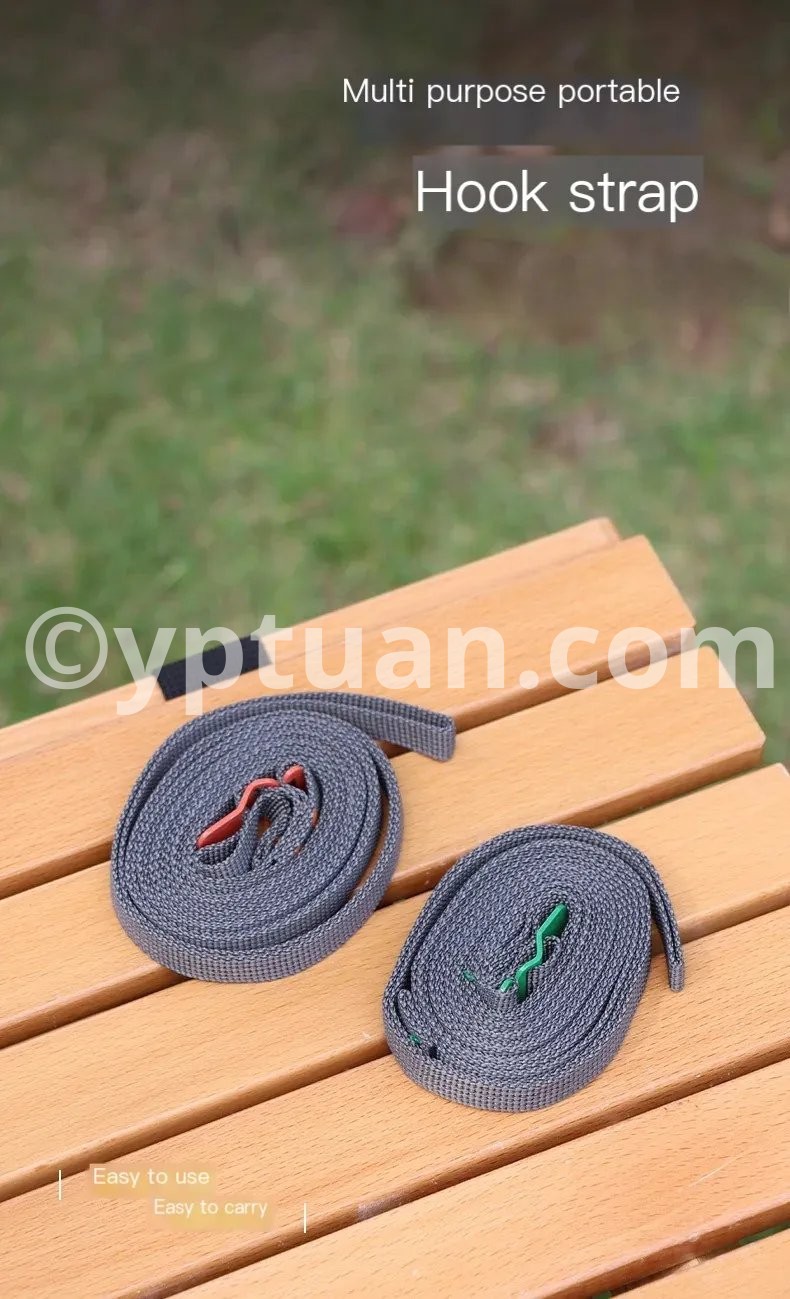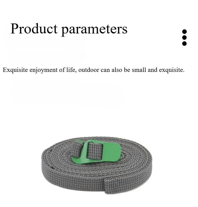 This is a lightweight, portable, practical, fast release, bundling and tightening rope. The material is sturdy and wear-resistant, and the quick release hook structure is convenient and time-saving. The stainless steel buckle material and thickened high-strength webbing of the binding rope with different plastic buckle styles on the market can bear the weight of an adult. The product structure and design are also novel and convenient. One side is fixed and hooked, and the other side can be tightened or loosened by pulling the ribbon. Suitable for packing car [bicycle] luggage racks, backpacks, tents, sleeping bags, and other large luggage items.