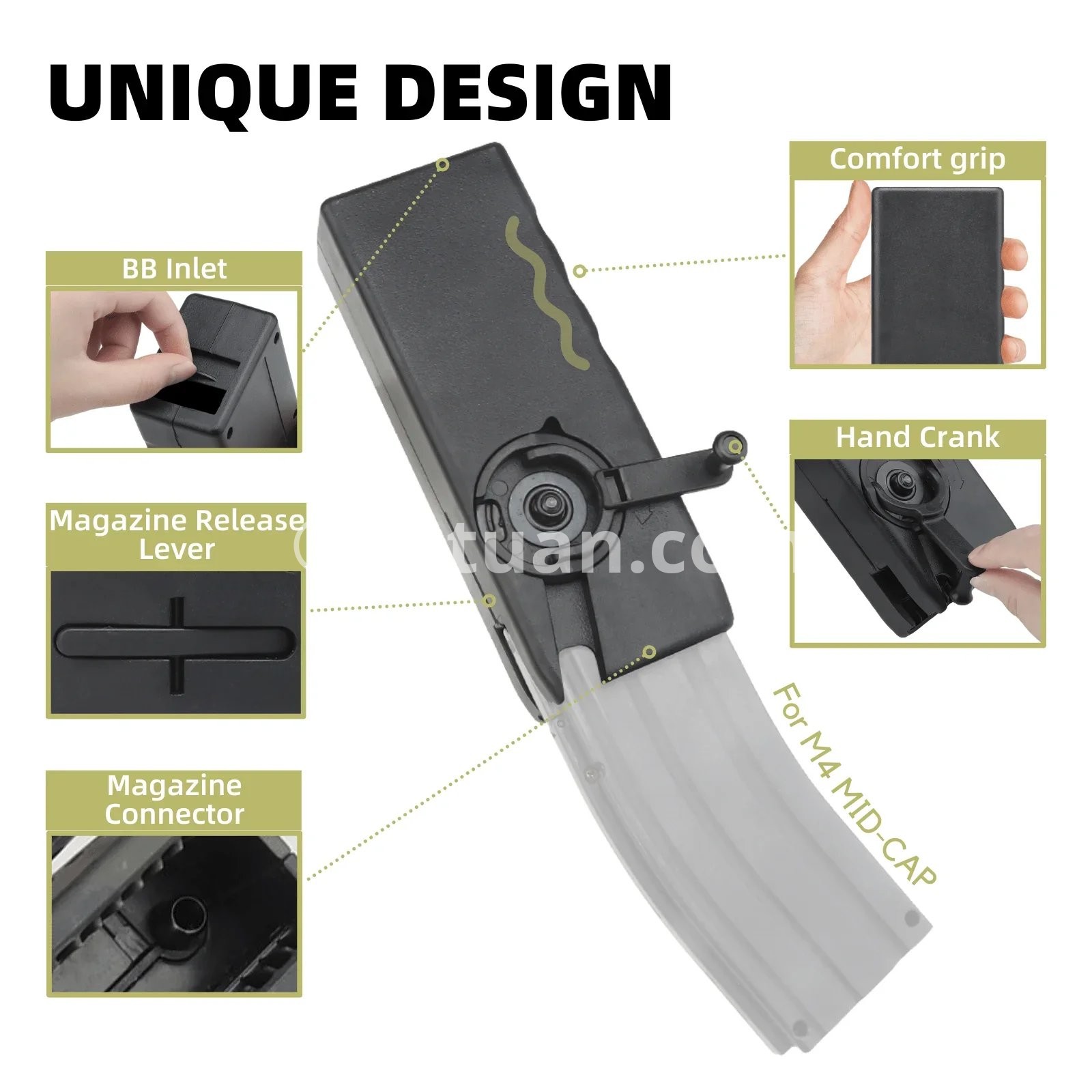 AIRSOFT SPEED LOADER SuprLoad 1000 Lite UNIQUE DESIGN Hand-cranked for rapid BB loading. The magazine locking mechanism prevents accidental drops. Built-in O-ring in the feeding nozzle prevents BB spillage.