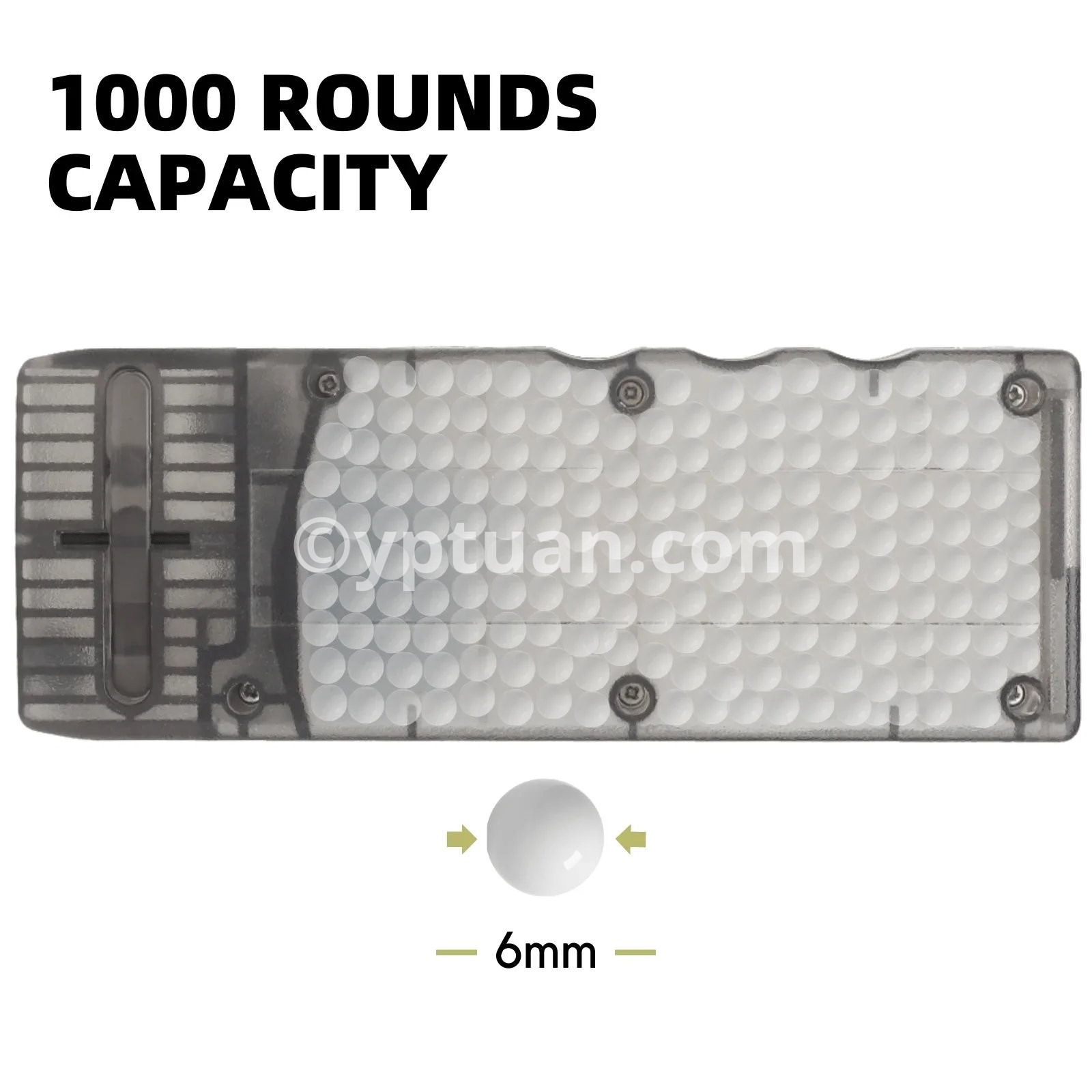 1000 ROUNDS CAPACITY Holds up to 1000 rounds of 6mm BBs, offering ample storage for loading multiple magazines.