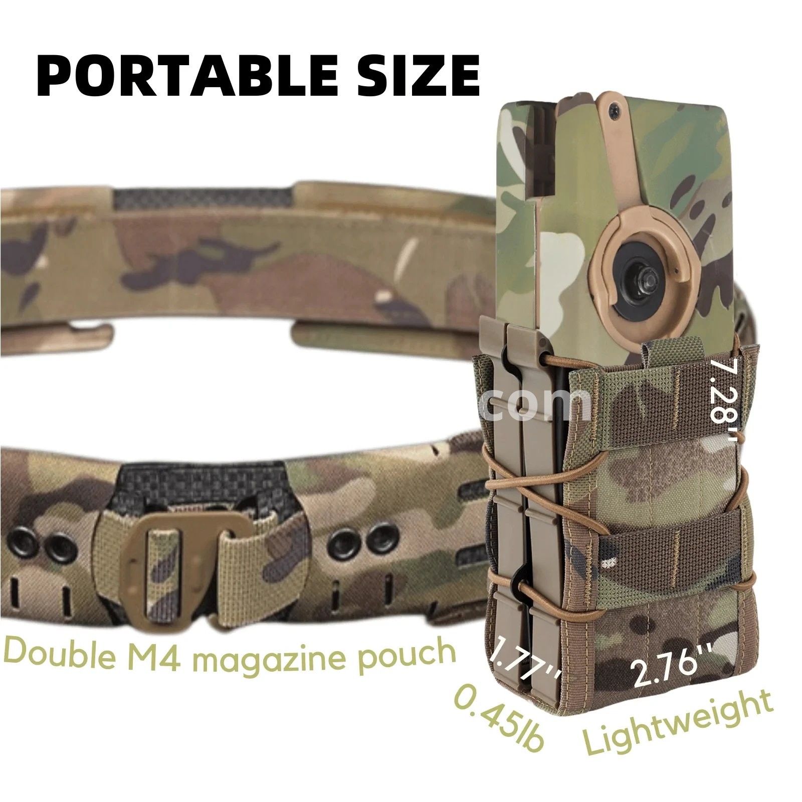 PORTABLE SIZE Fit in double M4 magazine pouch. Lightweight and compact, easy to carry and fit into your magazine pouch. Measuring just 2.76 x 1.77 x 7.28 inches, it's highly portable.