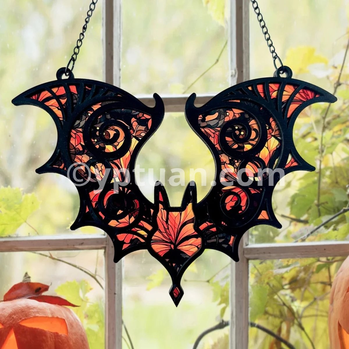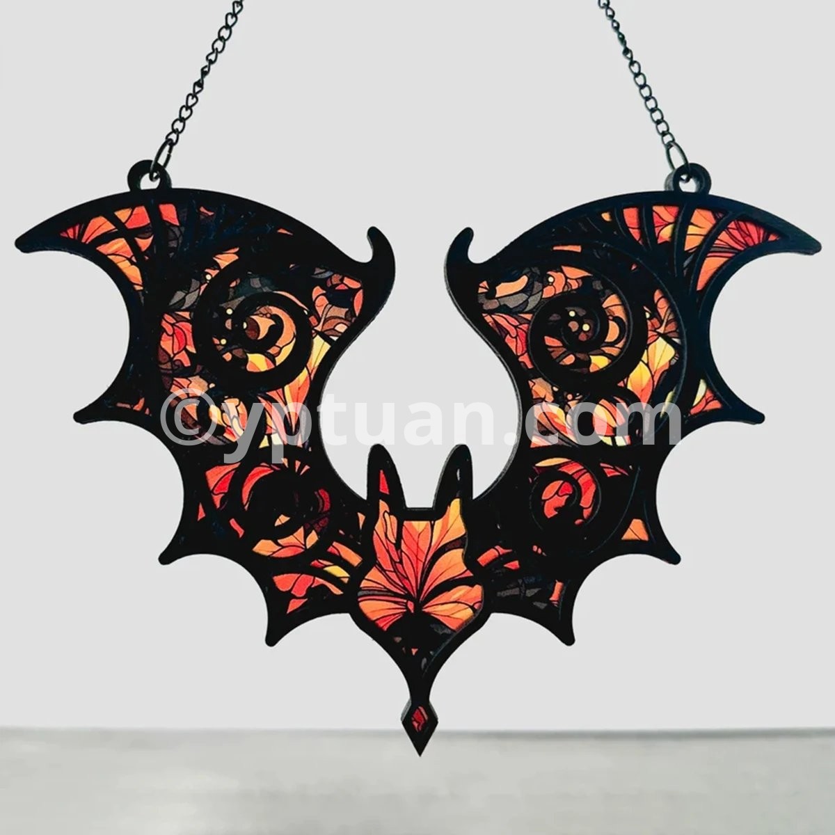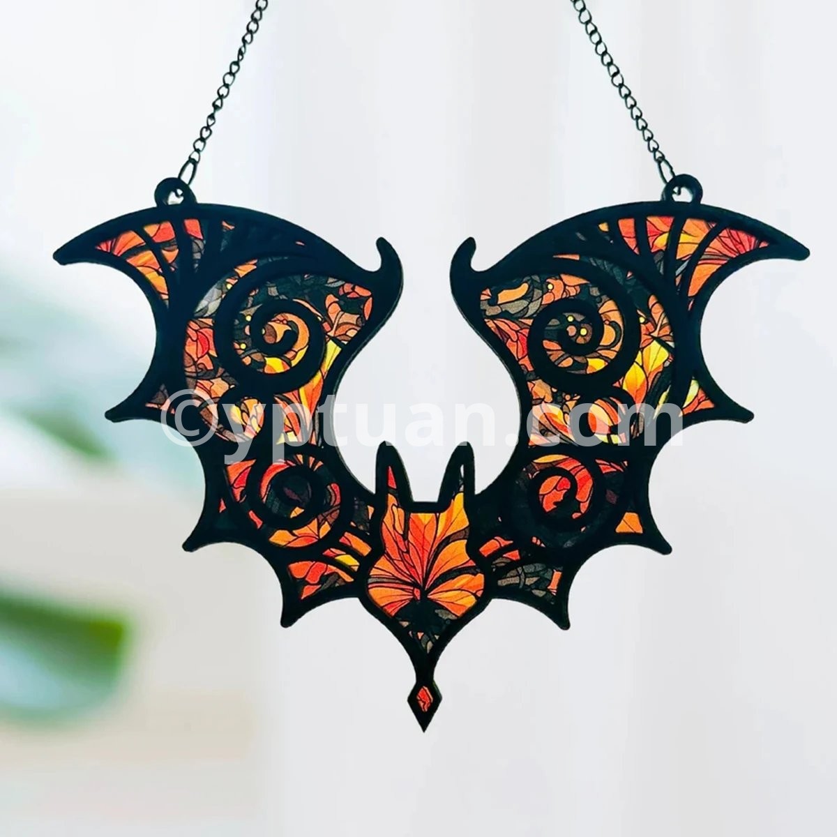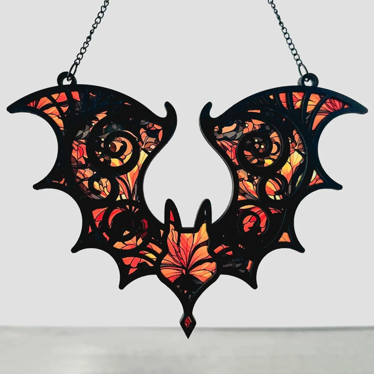 Acrylic Bat Hanging Decoration Stained Glass Effect Gothic Halloween Window Decor Colorful Suncatcher for Home Party Decor Gift