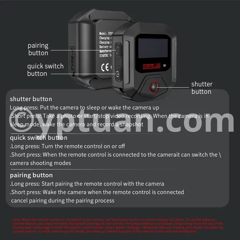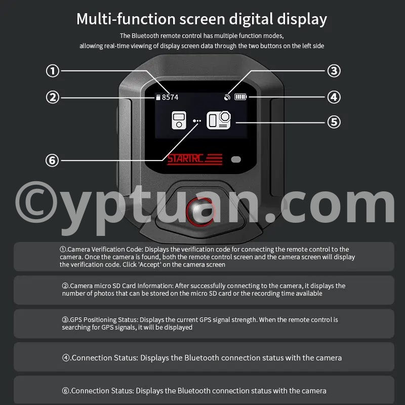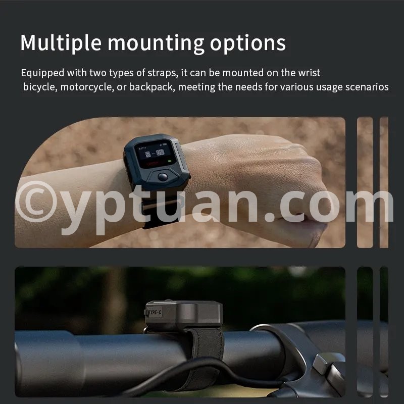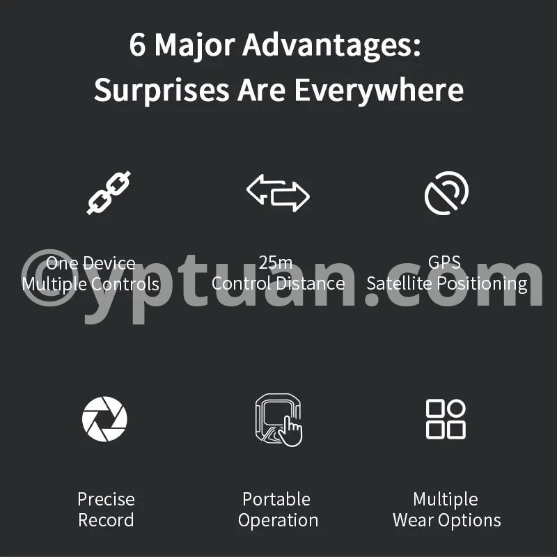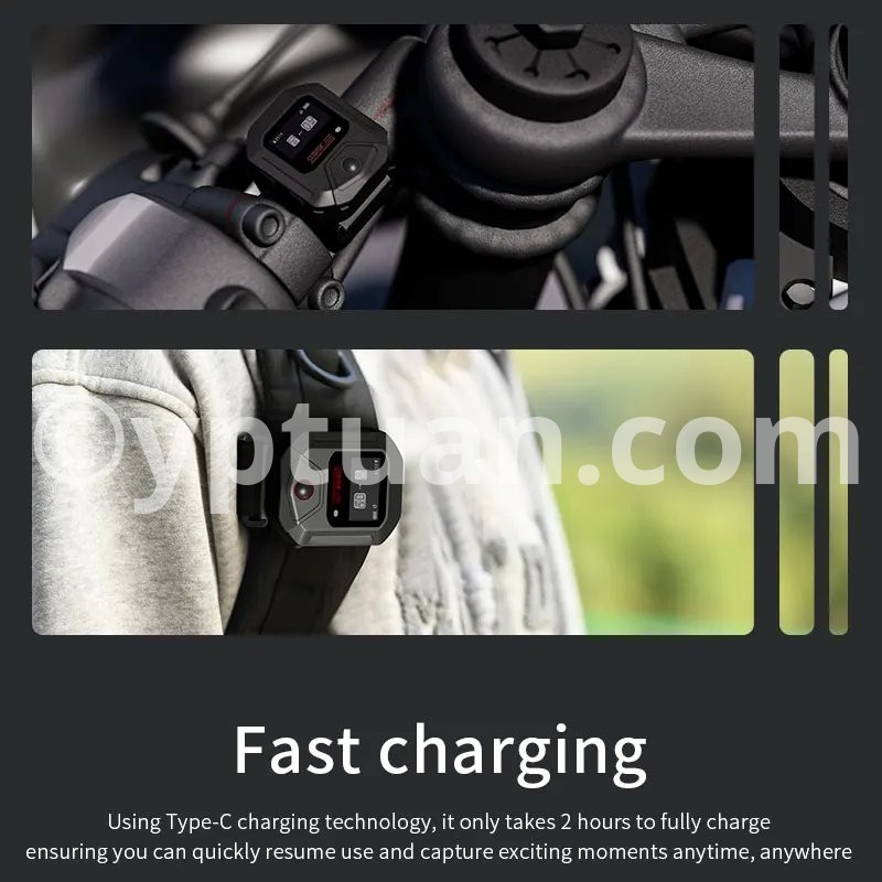1. Exclusive design. A screen Bluetooth remote control designed specifically for DJI Osmo Action series cameras, which can be connected to the camera to control remote shooting. It is suitable for DJI Action 4/5 Pro; 2. One machine with multiple controls. This Bluetooth remote control supports both single camera control and multi camera control, and can simultaneously control up to 16 cameras for shooting. The remote control distance is up to 25m, which can basically meet all your shooting needs; 3. Accurate recording. The Bluetooth remote control has a built-in multi-mode satellite positioning module, which can accurately record sports data. After connecting to the Mimo APP, real-time sports data such as speed, route, direction, and altitude can be selectively added to the shooting materials, and exported and saved to accurately record every exciting moment of yours; 4. Multiple functions. This Bluetooth remote control has multiple functional modes, which can be accessed in real-time through the two buttons on the left. It has stable connection, simple and convenient operation, compact size, and can be carried around; 5. Two fixed methods. This set is equipped with two types of straps, one can be used for wrist fixation, suitable for some close range sports wear, with an extended wrist strap design, suitable for most people to use, and the other can be used for fixation on bicycles, motorcycles, backpacks, and can be used for transportation and assembly during operation. Two perfect straps can solve most outdoor sports, adventure photography