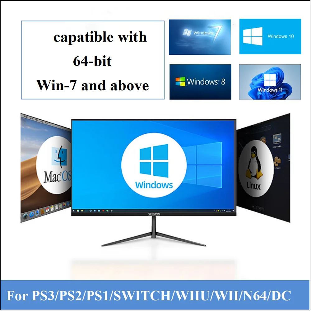 2、100% plug and play,no need to download additional plug-ins,Compatible with 64-bit Windows 7/8.1/10/11.Compatible with PS3/PS2/PS1/SWITCH/WIIU/WII/N64/DC/GAME CUBE/NES/SNES etc Emulators.