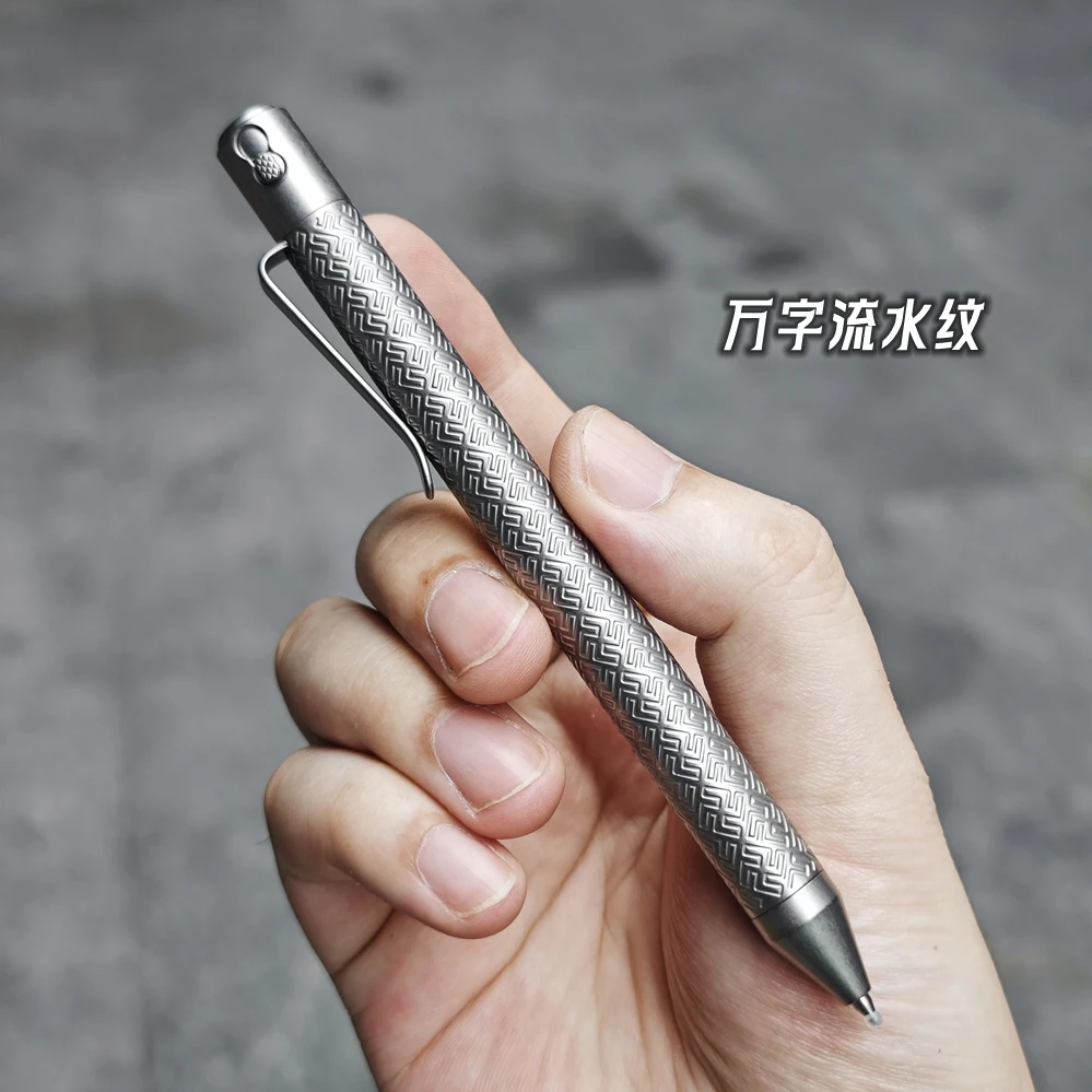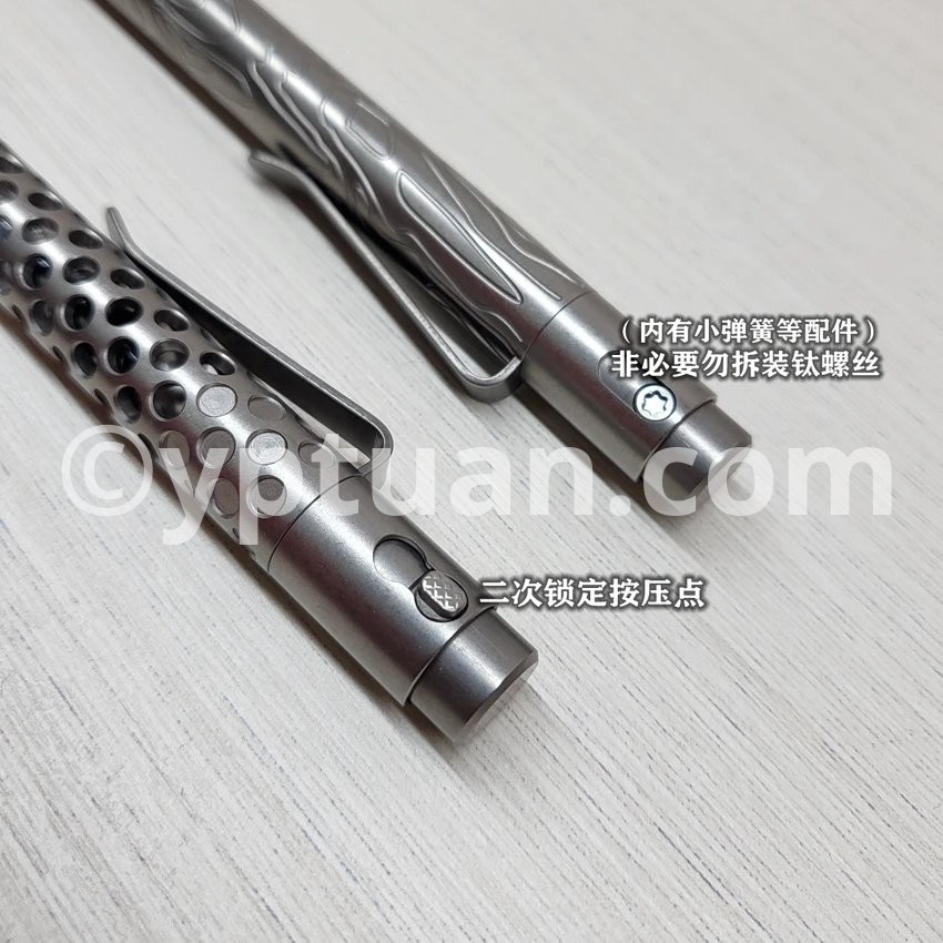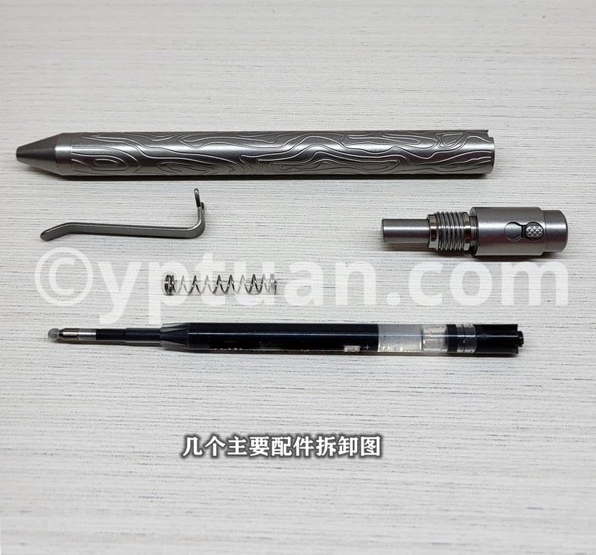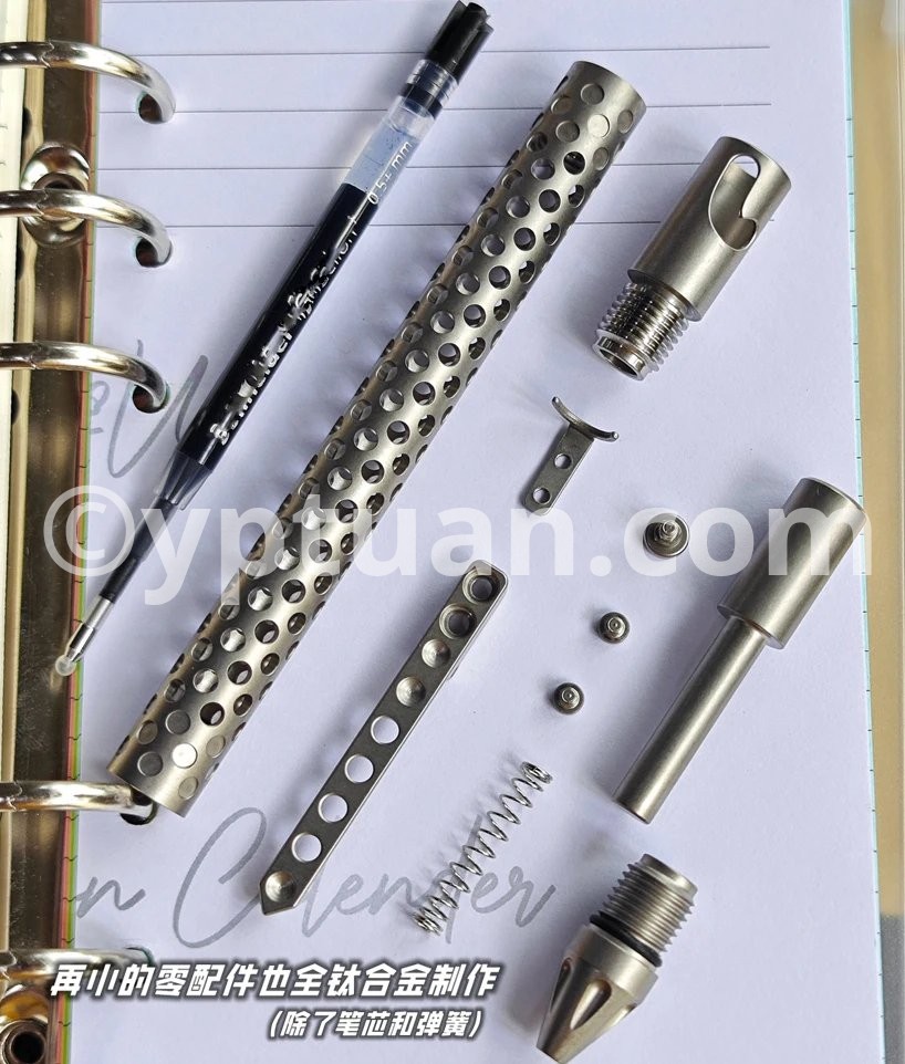 Item specifics: Material: Titanium Alloy Total Length:135mm Width:11mm Refill type:G2 Net weight: 33g Note:We only provide a titanium alloy pen.Other accessories in the picture are just for display reference.