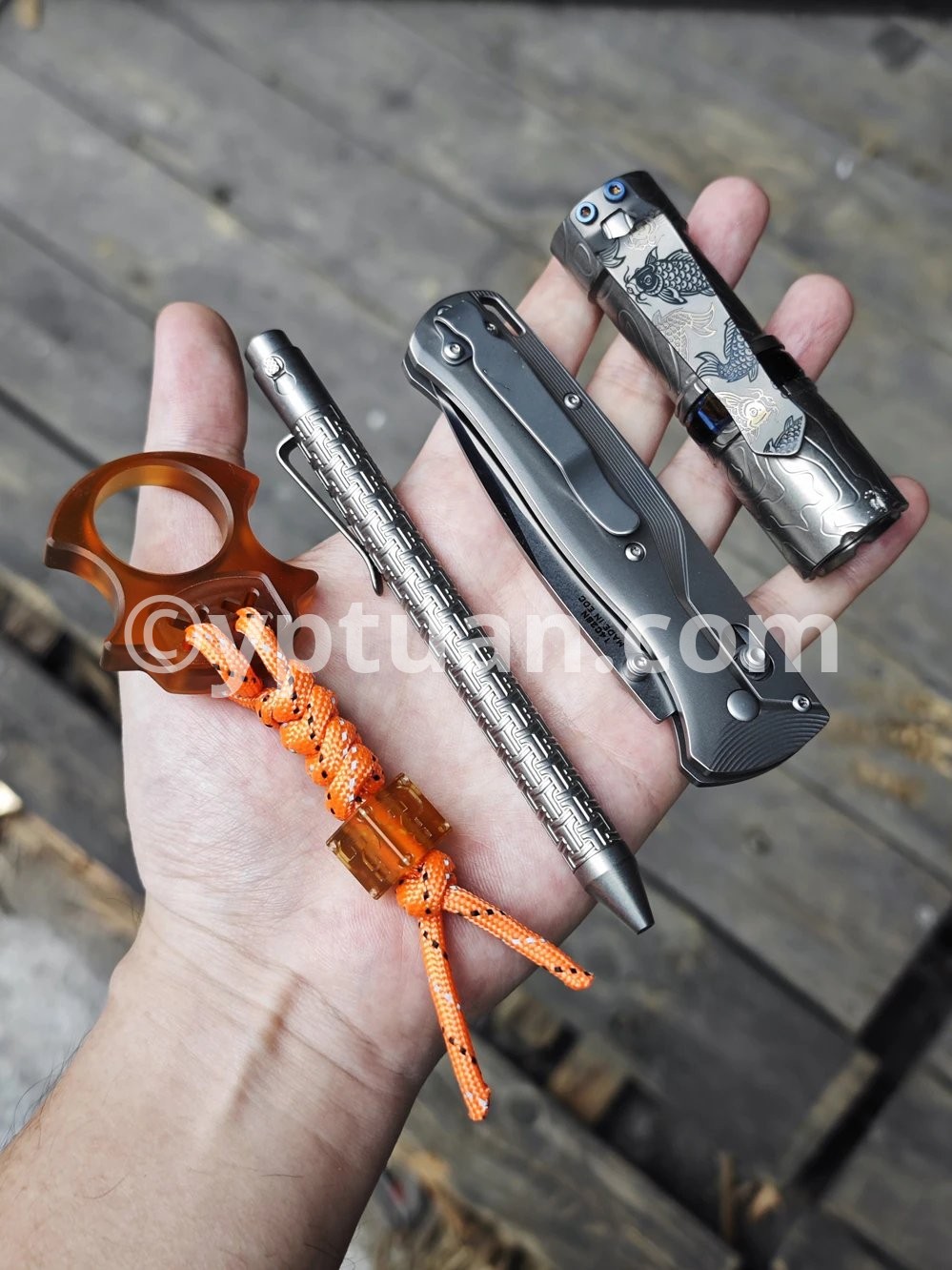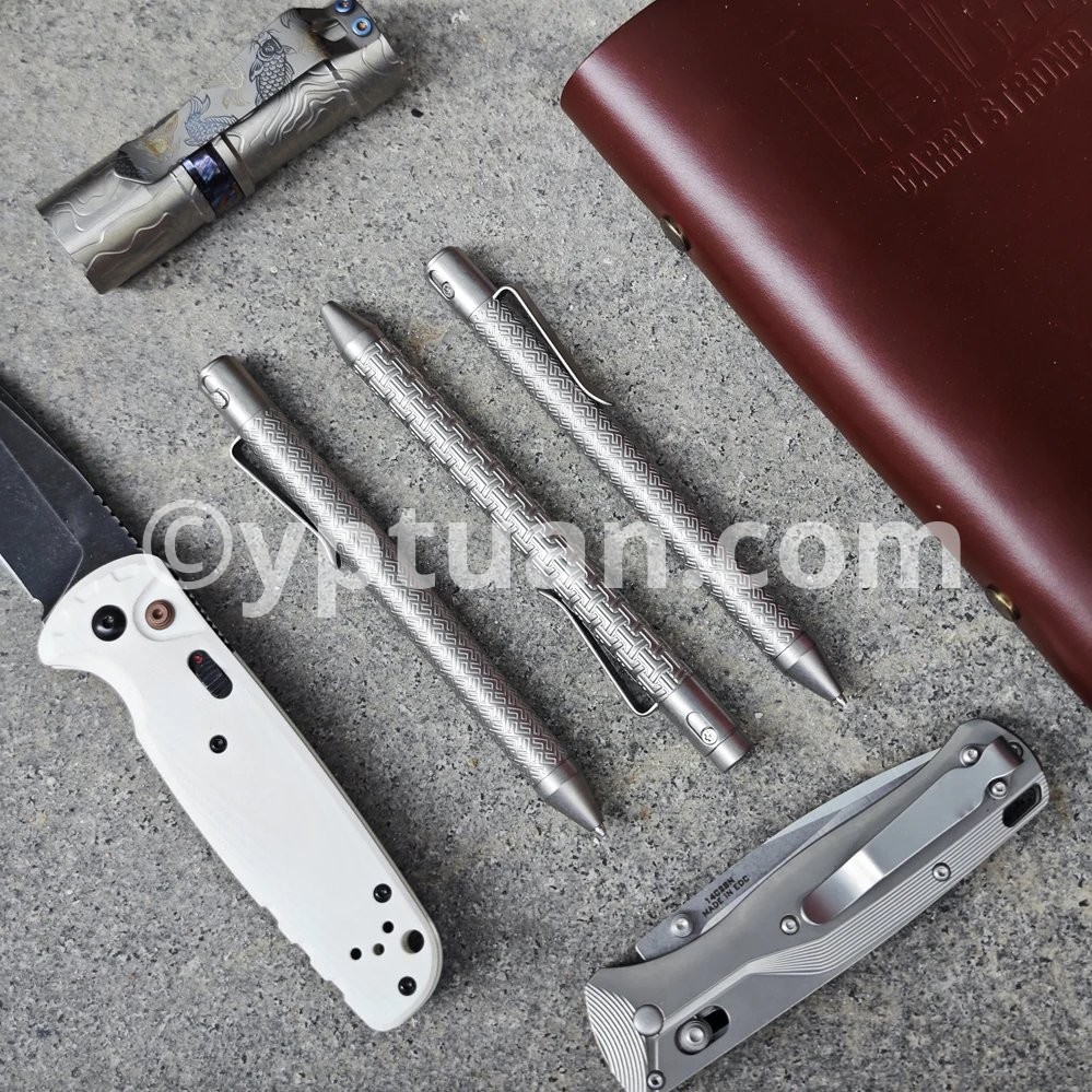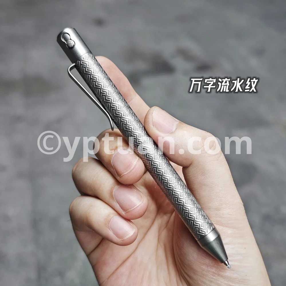Item specifics: Material: Titanium Alloy Total Length:135mm Width:11mm Refill type:G2 Net weight: 33g Note:We only provide a titanium alloy pen.Other accessories in the picture are just for display reference.