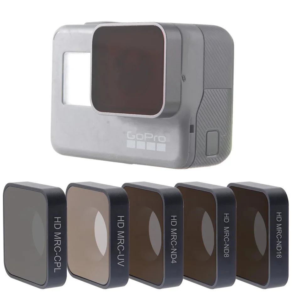 For Go Pro Hero 5 6 7 Lens Accessories UV CPL ND 4 8 16 Neutral Density Filters Set For GoPro Hero5/6/7 Black Action Camera ND Filter Higher the ND Value, the more obvious the light-reducing effect. It reduces the amount of light in very bright conditions so that camera can choose the correct exposure value and avoid excessive exposure. It also improves the color saturation of the picture, Makes the picture more transparent and alive. you can also use a slow shutter speed to shoot some special effects, such as a mist of water, a light track at night, etc. When you shoot video in direct sun exposure, you can reduce the shutter speed by ND Filters, so that the video has the appropriate motion blur and looks balanced. Compatible Model : Compatible For GoPro Hero 5/Hero 5 Black Action Camera Compatible For GoPro Hero 6/Hero 6 Black Action Camera Compatible For GoPro Hero 7 Black Action Camera Compatible For GoPro Hero 2018 Action Camera Package List : 1x Action Camera Lens Filter 1x Storage Box