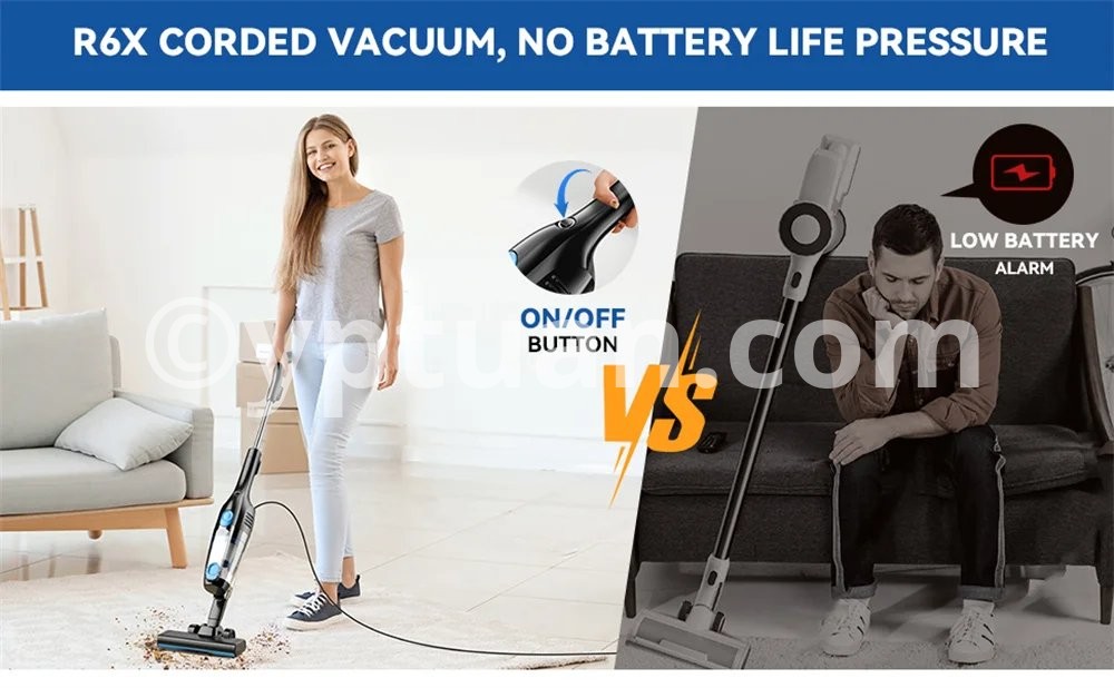 R6X: With 5M long cord, 20Kpa powerful suction, 600W, 5 stages filtration