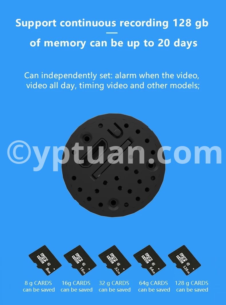 Camera model: X14 Video format: 1080P Pixel lens: 2 million Lens angle: 140 Video format: AVI Video format: 30fps WiFi function: support Motion detection: support Binding recording: support Power supply type: Micro USB Card type: MicroSD card Memory: up to 128GB micro SD card (excluding SD card) Main functions: motion detection, video loop, remote vision. Applicable to: family safety monitorin Product size: 60*20*20mm Product color: black Product material: ABS Package contains: 1 * Mini camera 1 * User Manual 1 * micro USB cable Use weather instructions: buy according to your needs: 128GB memory card can be used for 30 days. 64GB memory card can be used for 15 days. 32GB memory card can be used for 7 days.