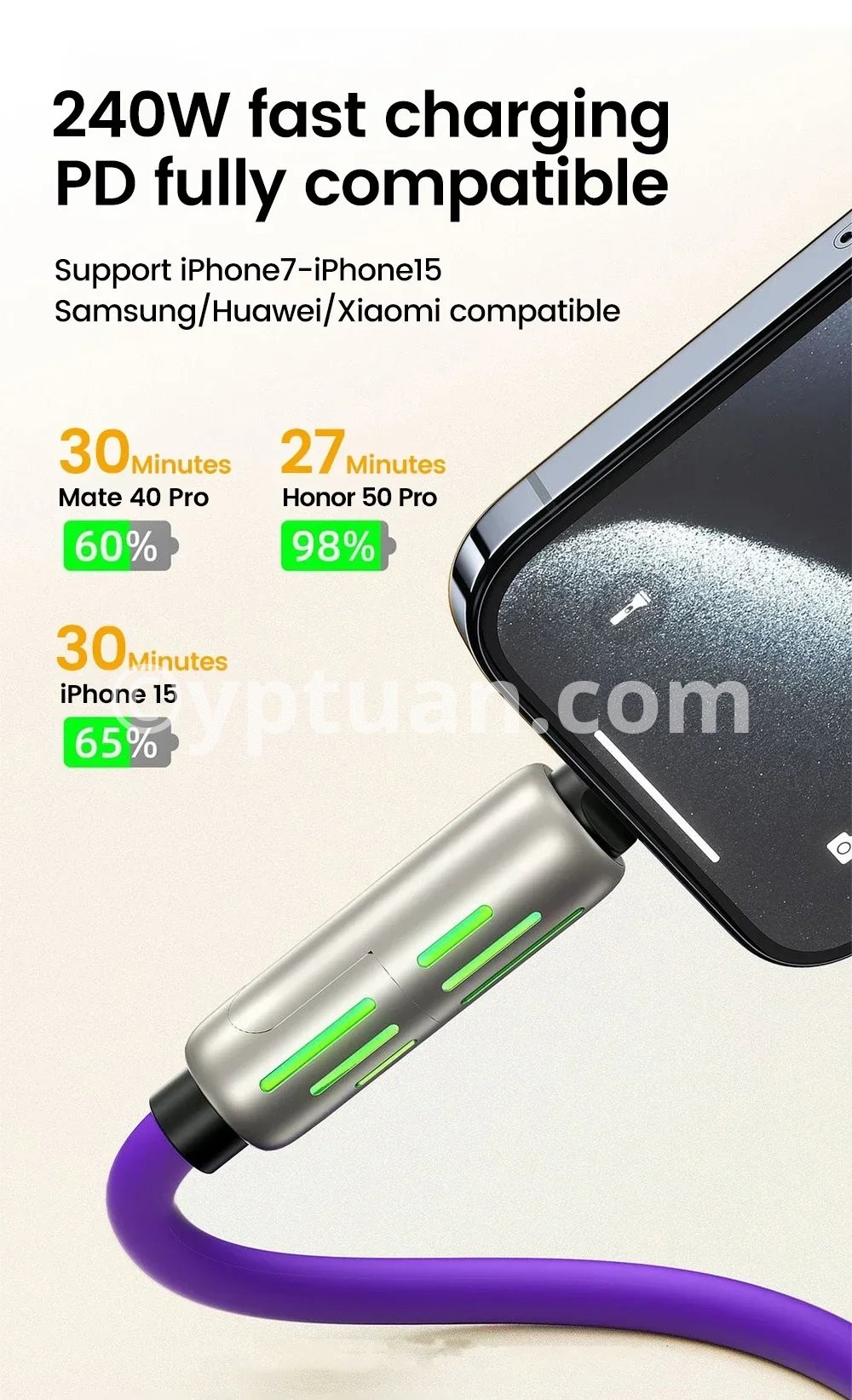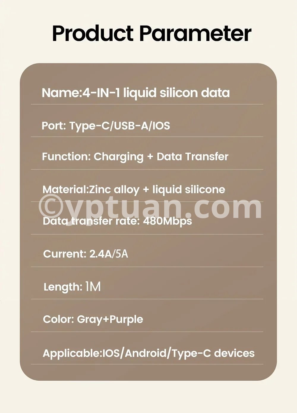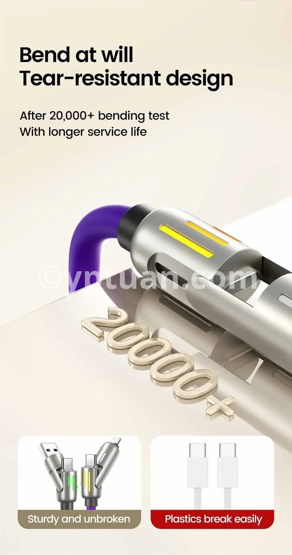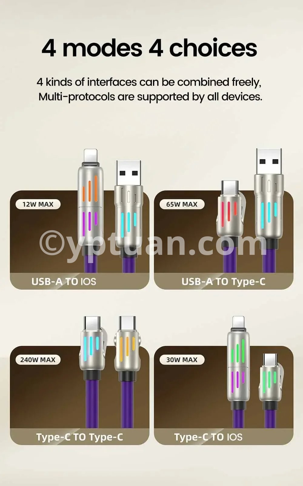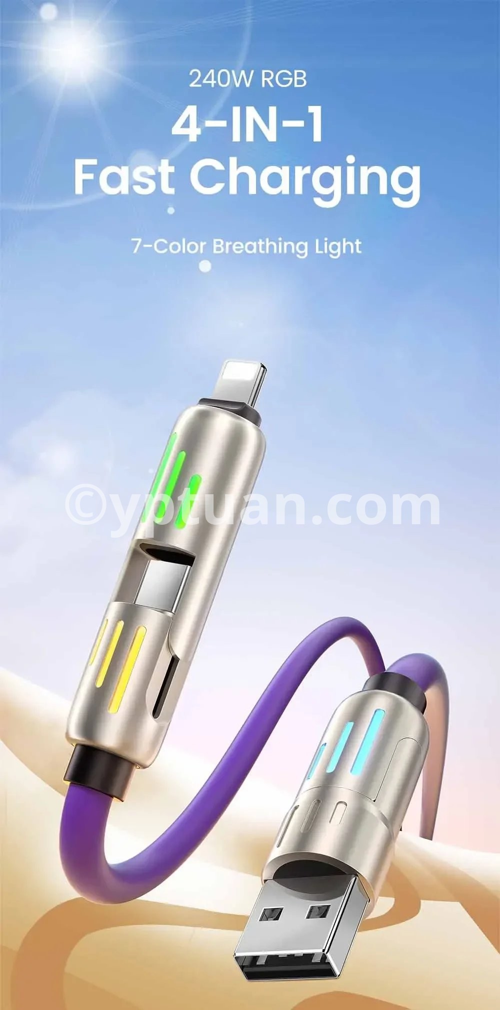 New 4 in 1 Multi Connectors Charger Rotating Elbow USB To Type-C Mobile Phone 240W PD Fast Charging Silicone Cable Data Transfer