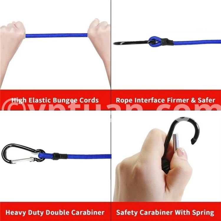 5. Widely Used: Bungee cords with carabiners is suitable for outdoor, mountaineering, camping, hiking, fishing, etc.