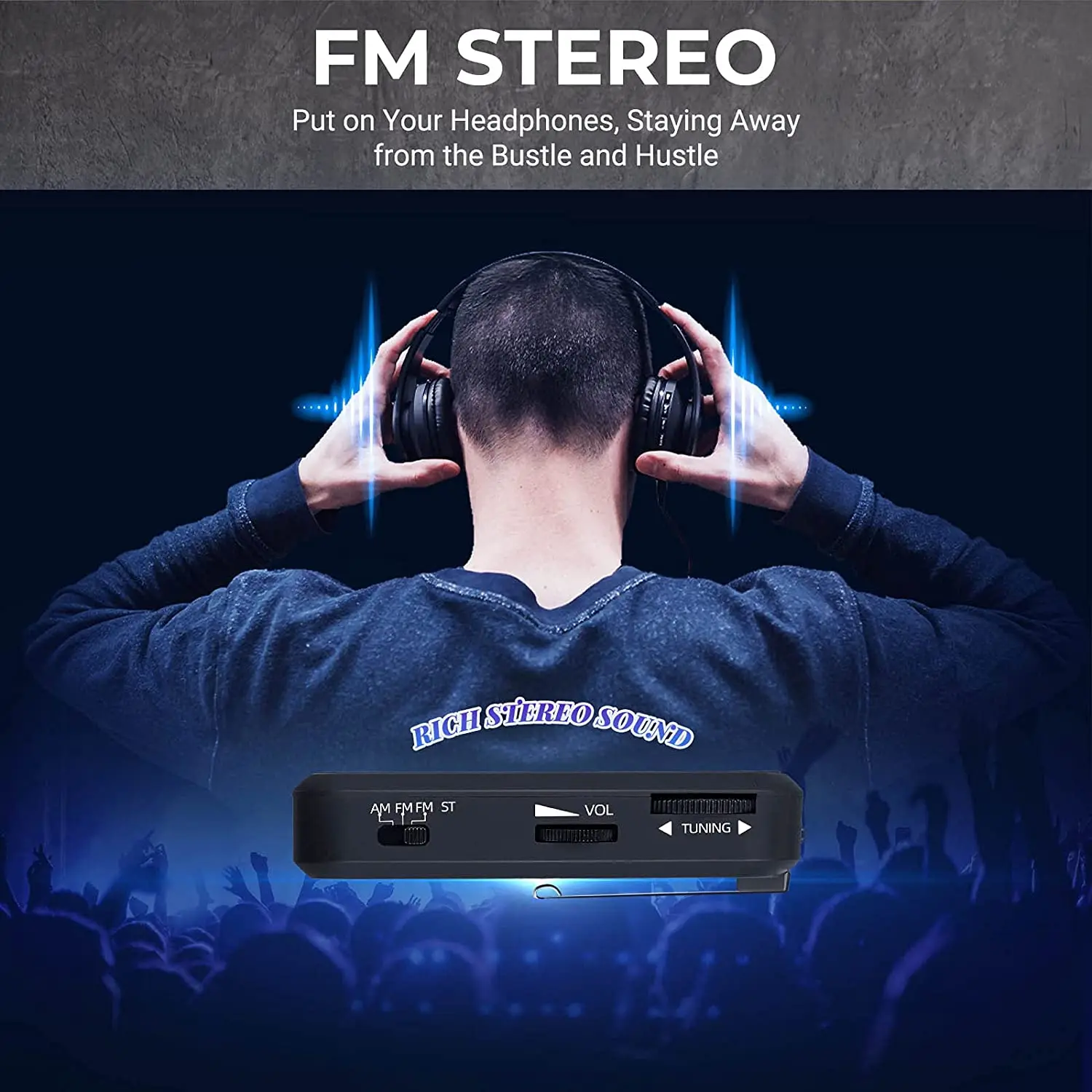 【FM Stereo】On the mode of FM-ST, this am fm small radio portable delivers rich stereo sound. 3.5mm headphones jack is designed for exclusive music space. Just put on your headphones, then can enjoy the fantastic time by yourself and take a break from the bustle and hustle.