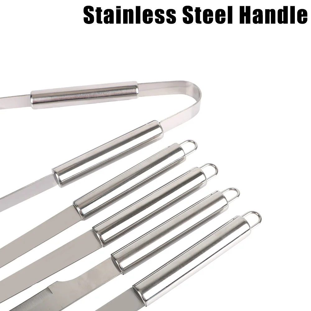 High quality material:Made of durable stainless steel, the BBQ Tool Set is heavy duty, rust-free, and long-lasting with non-slip stainless steel handles to provide you the most comfortable cooking experience.