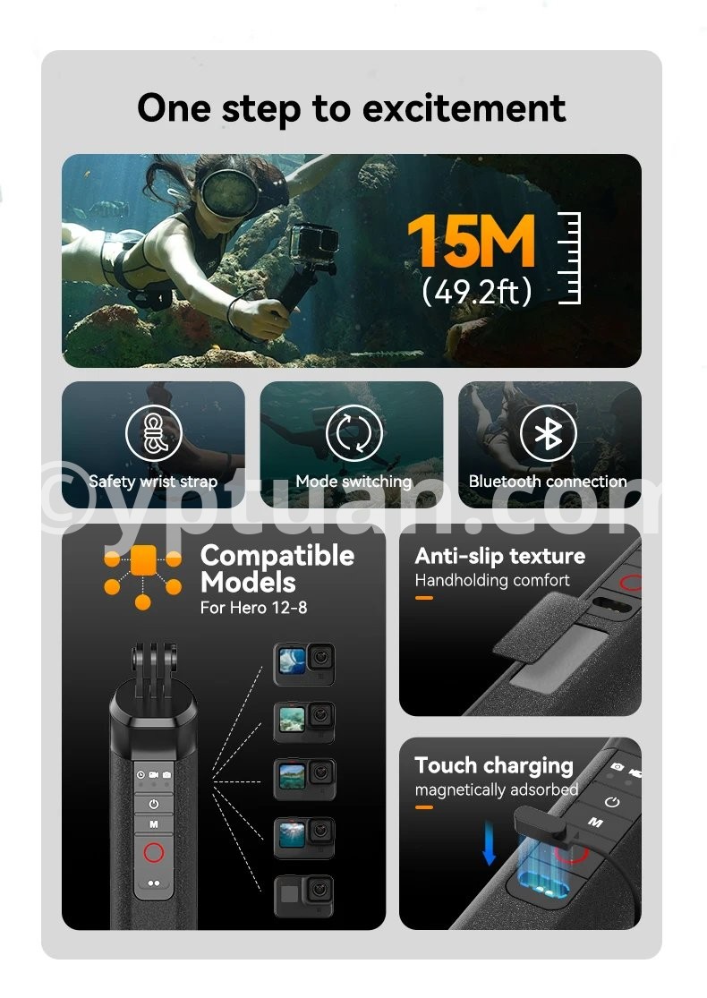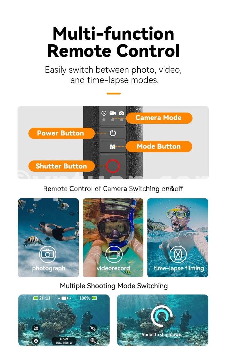 Please note that the remote control requires the camera to be mounted on the buoyancy bar in order to work, if the camera is not mounted on the buoyancy bar, the remote control cannot be used.
