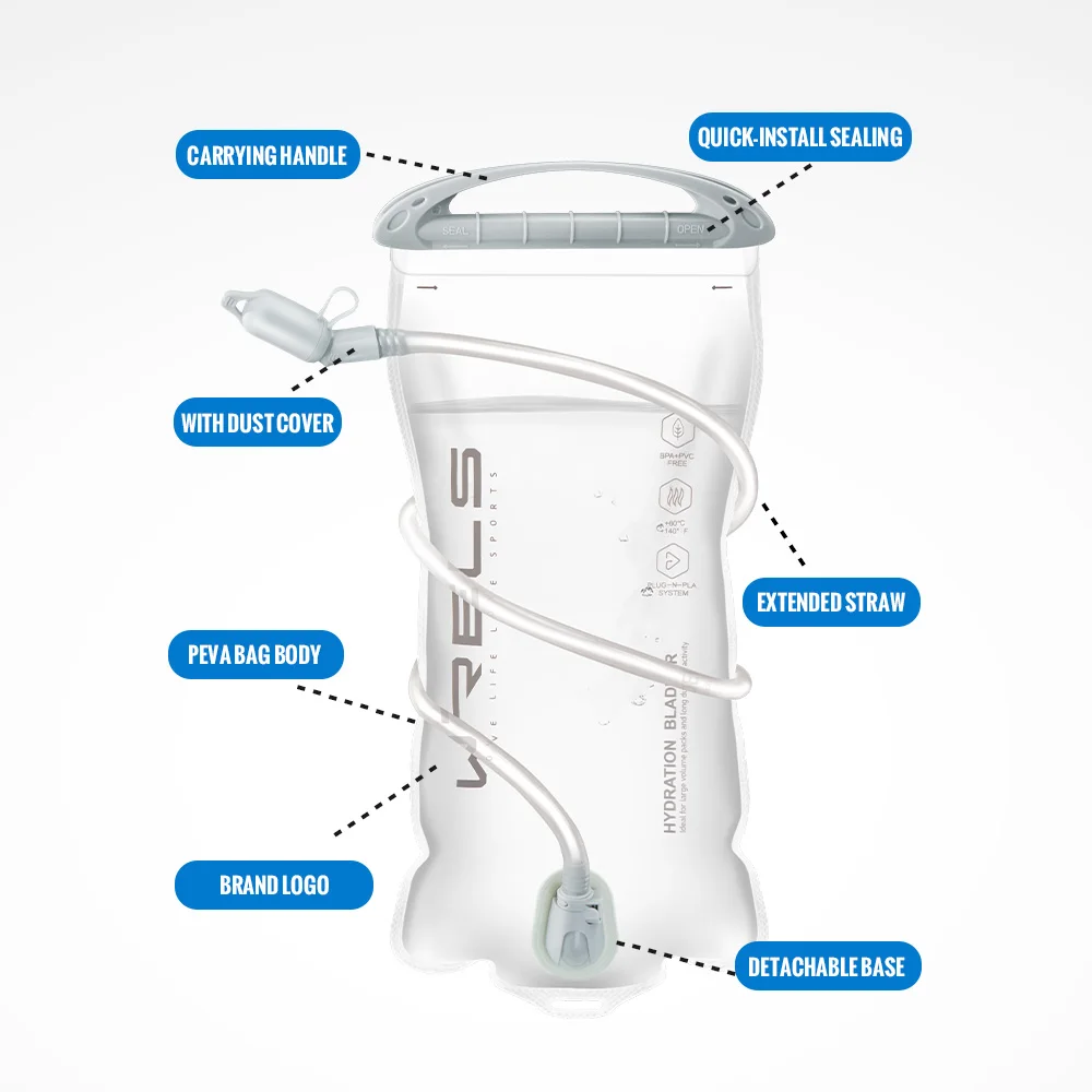 WRELS Hydration Pack Leak Proof Water Reservoir BPA Free Water Bladder Storage Bag Hiking 1L 1.5L 2L 3L Running Reservoir Bag