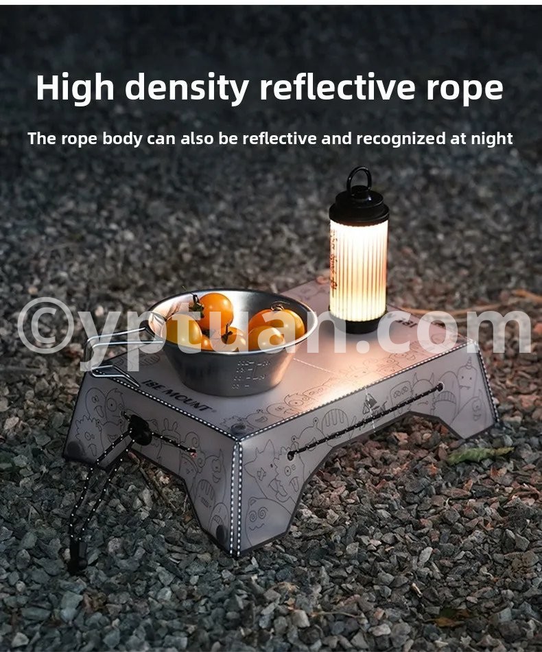 Reflective Cord – high-density rope glows in torch-light so you don’t trip at night