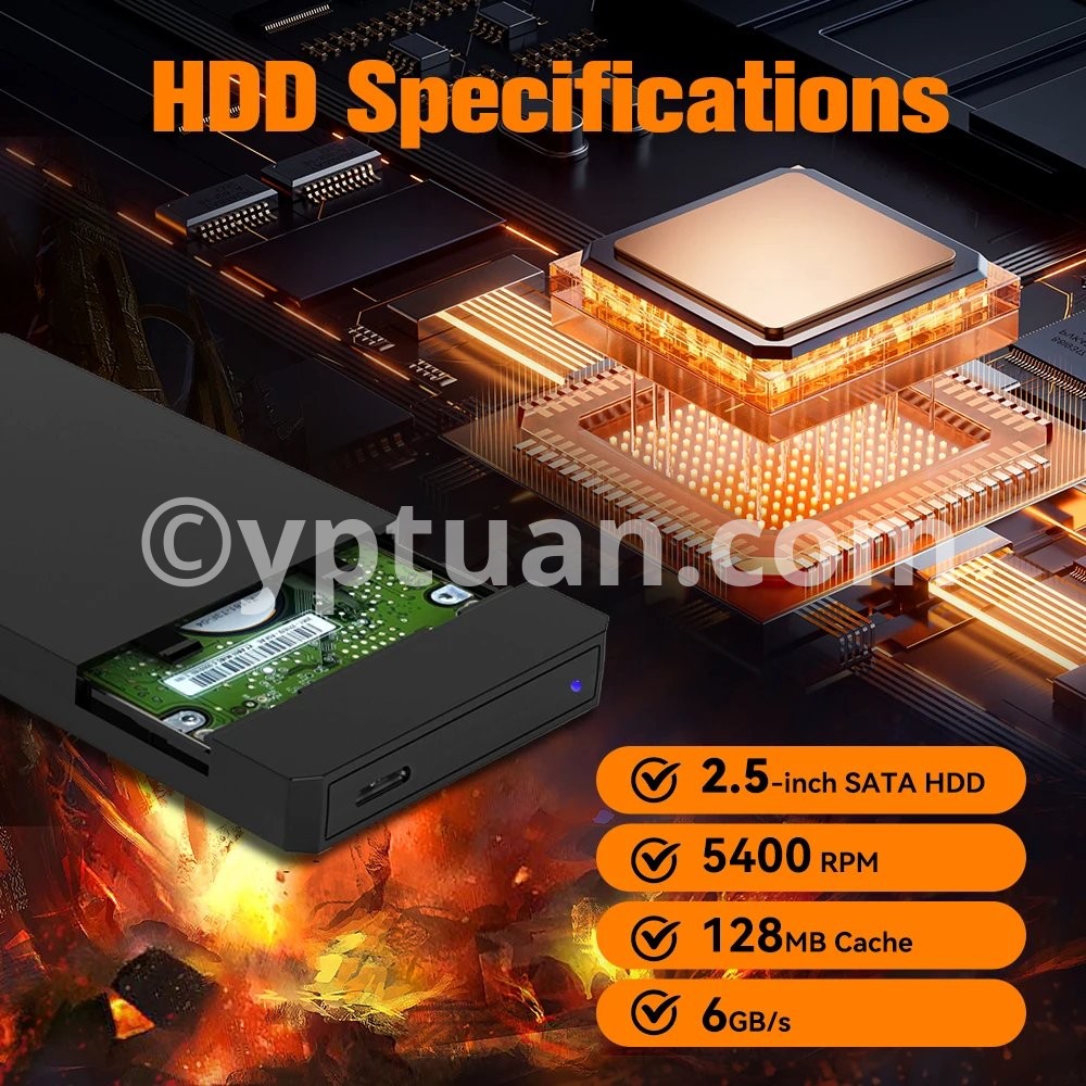 This 2.5-inch portable game console supports 5400RPM and has a 128MB cache, which ensures quality. The USB 3.0 interface has high-speed transmission, up to 6GB/S. The data transmission speed is fast and the data is more secure.