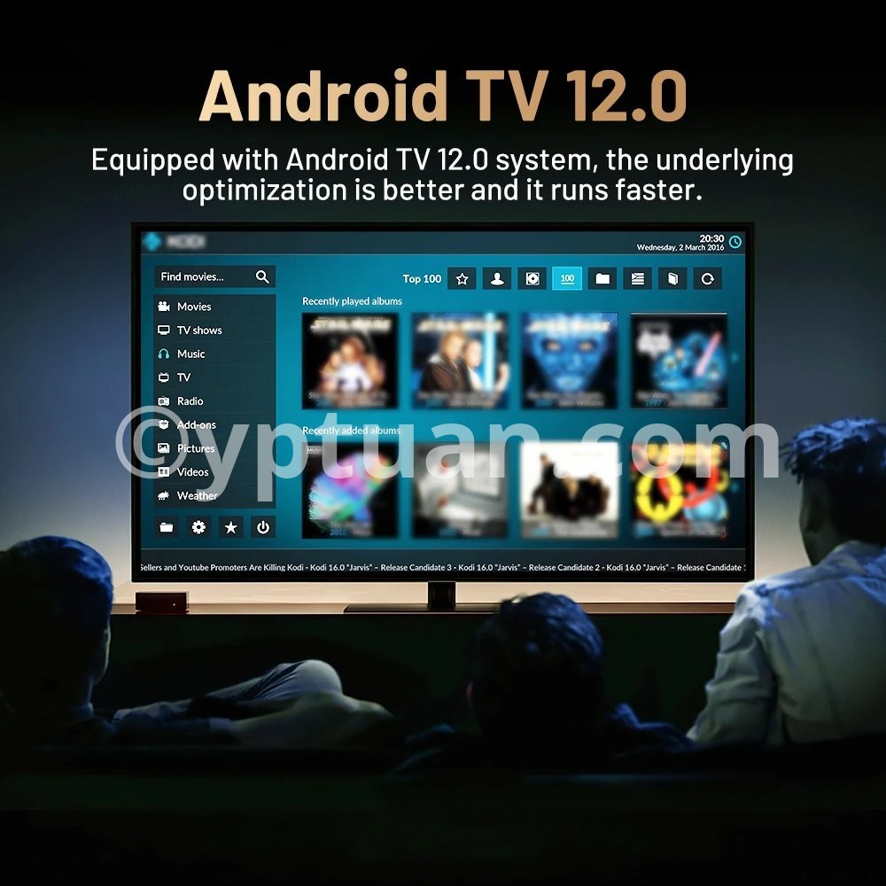 Equipped with Android 12 system, the underlying optimization is better, the running speed is faster, and it supports the installation of 64-bit Android applications such as ARMv8 64-bitKODI (compared with 32-bit Android applications, 64-bit applications run faster)