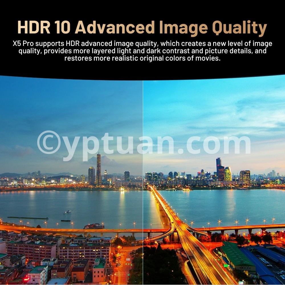 X5 Pro supports AI-PQ image quality enhancement, which can optimize 4K image quality to 8K@30fps and 1080P to 4K, allowing you to enjoy ultra-clear vision.