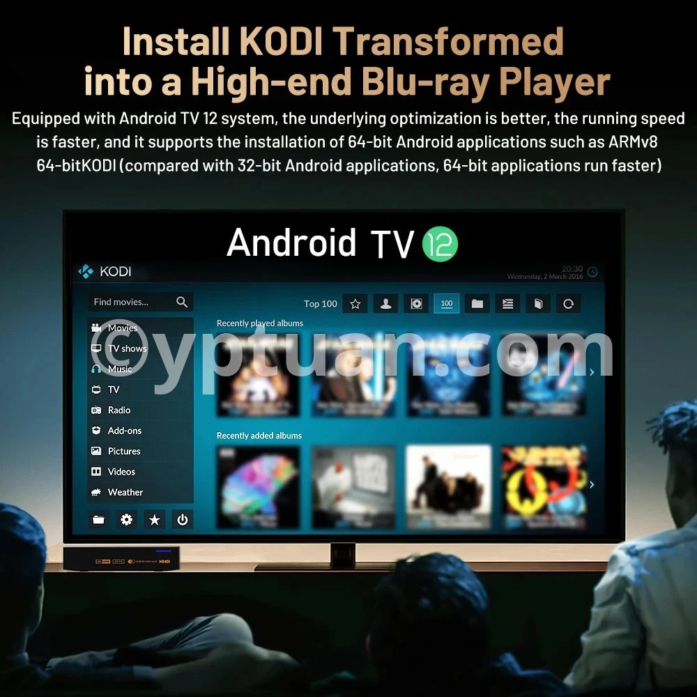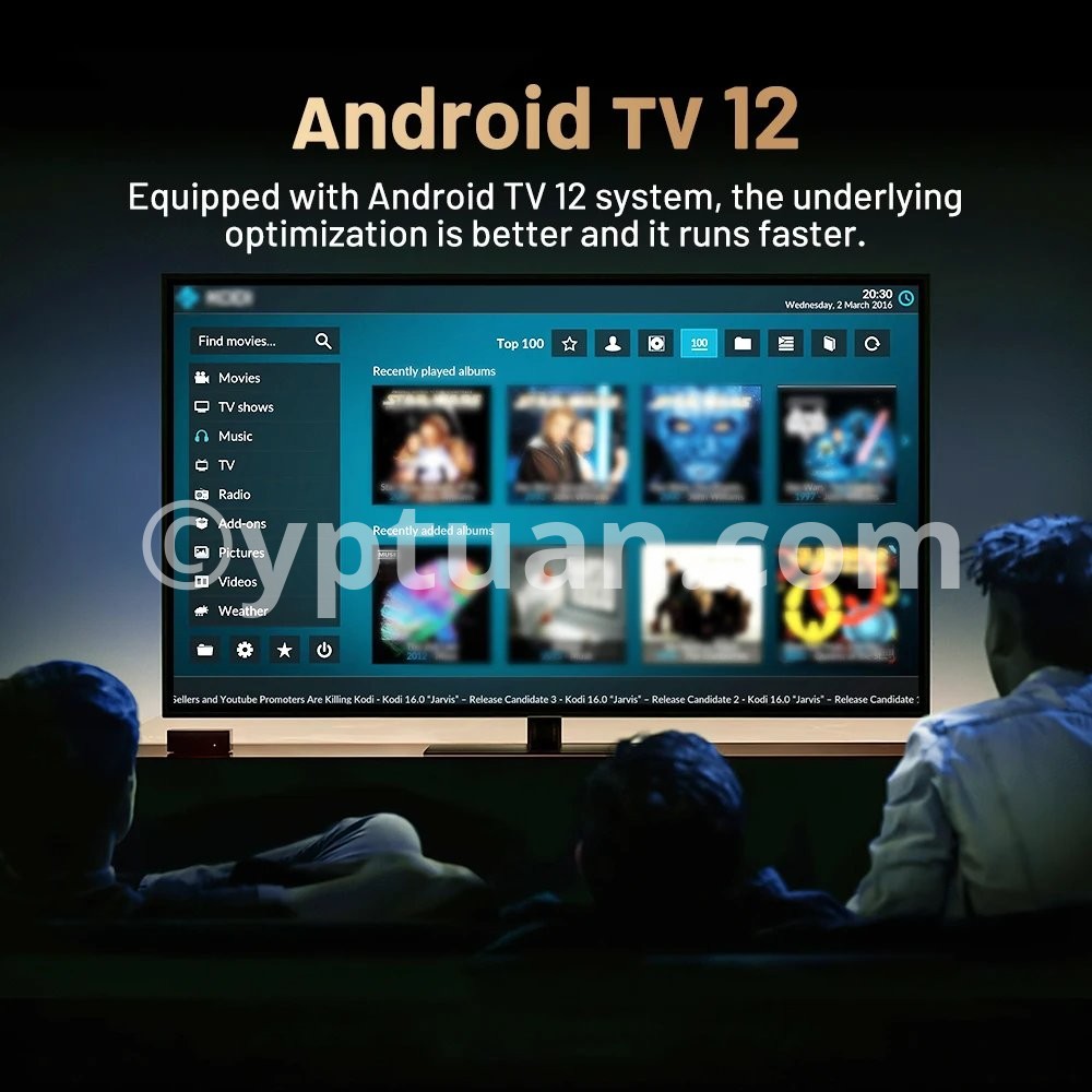 Equipped with Android TV 12.0 system, the underlying optimization is better, the running speed is faster, and it supports the installation of 64-bit Android applications such as ARMv8 64-bitKODI (compared with 32-bit Android applications, 64-bit applications run faster)