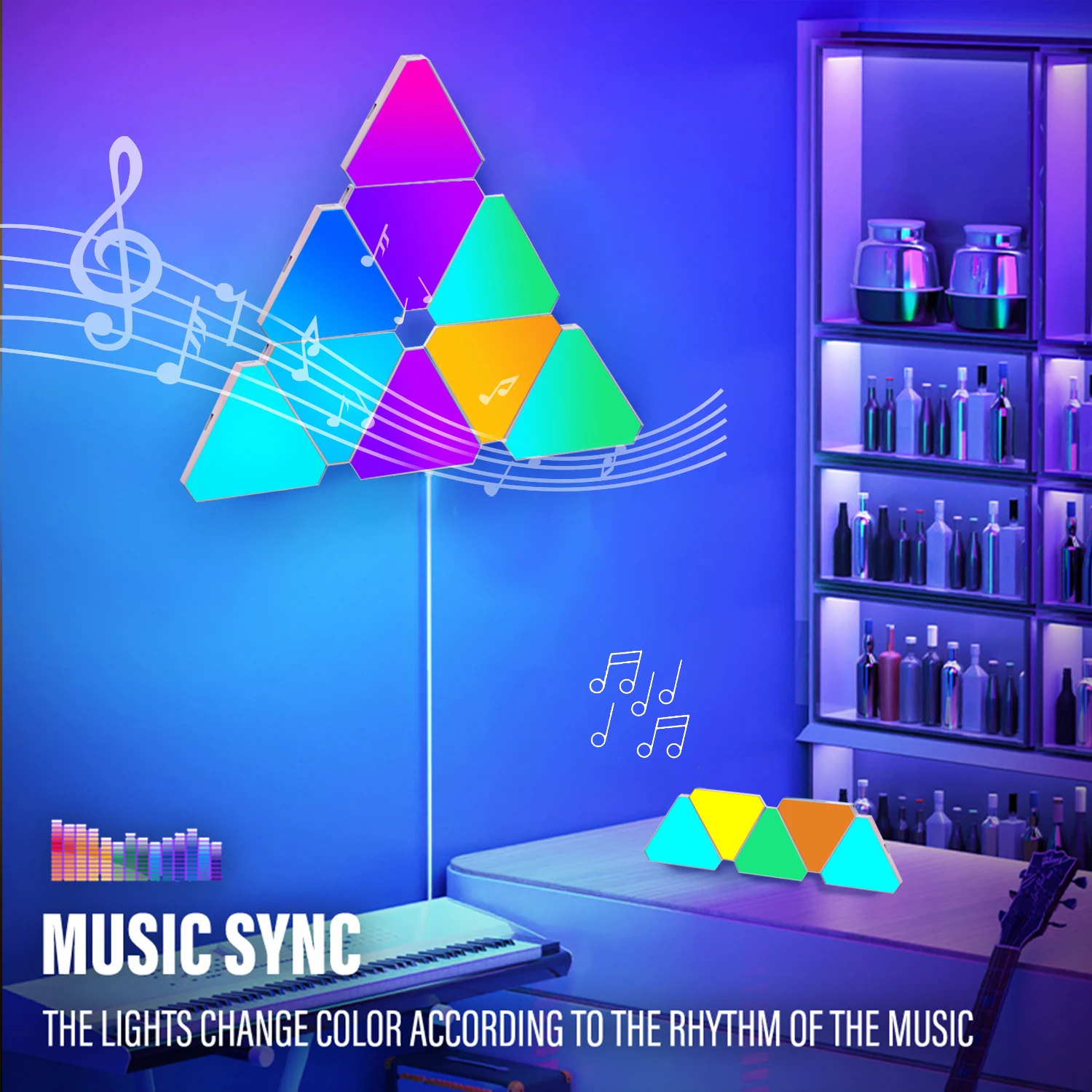 Fun Built-in Modes: Triangle LED light with RF remote control, you can enjoy 60 preset scene/music modes, dimming, speed, music/sound activation and timing functions. Auto Mode Switch lightning effects between 60 scene modes, including auto chase and crossover scenes. DESIGN YOUR OWN SHAPE: Create fun geometric LED patterns with these red, green and blue hexagonal dream lights. Triangle Light LED uses advanced LED lights to create vibrant colors that stand out in the dark. COOL SETTING: Triangle rhythm lights are perfect for home decor and wall art, creating a fun and lively atmosphere for your bedroom, living room, playroom, and rooms for kids, teens, girls, babies, and gamers. Add a special atmosphere to birthdays, Valentine's Day, Halloween, Christmas, Proposals, Dinners, Shows, Weddings or any party and other events.