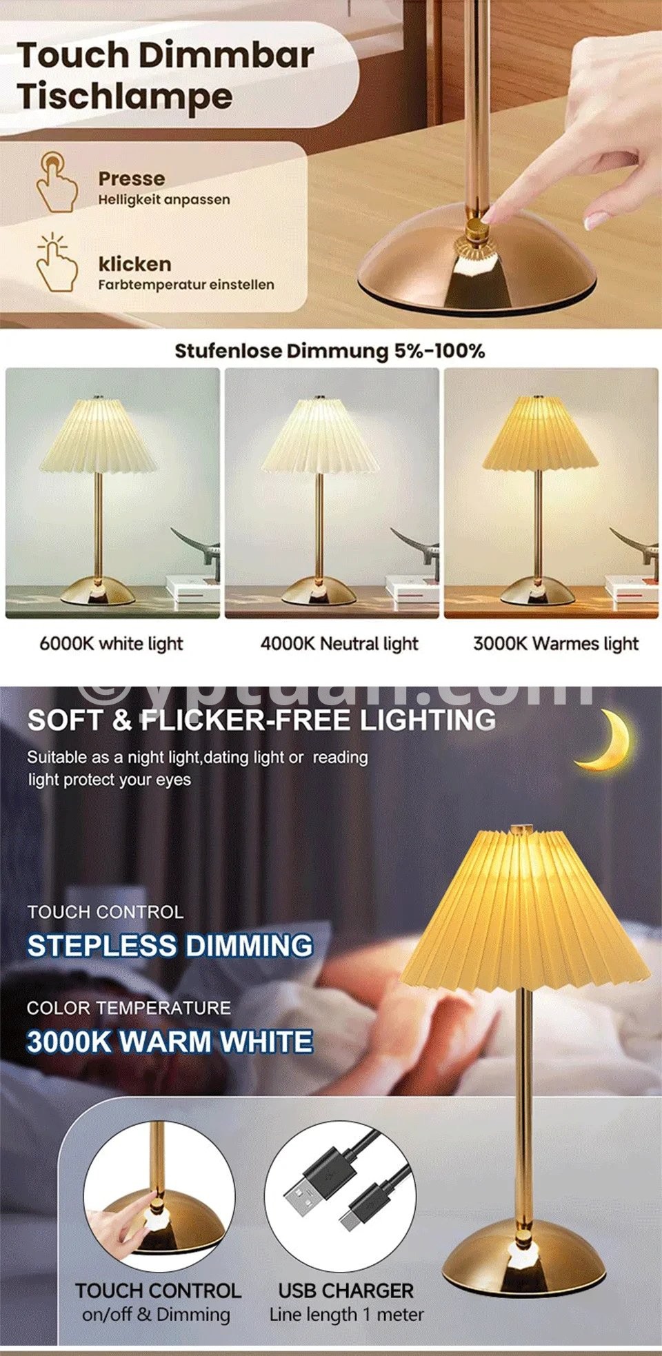 1.Rechargeable LED Lamp: This USB metal desk lamp features a rechargeable LED design, providing long-lasting energy-saving lighting for your space.