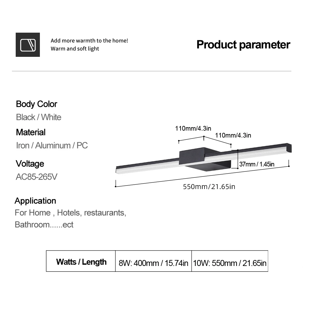 Led Wall Lamp Bathroom Vanity Light 40cm 55cm AC85 - 265V Indoor Modern Wall Sconces Mirror Wall Light Fixtures Black White Free Shipping