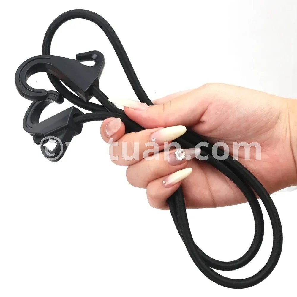 Description: [Integrated POM hook] 7mm rubber core with built-in molded POM buckle, no loose parts, no rust, ready for immediate use. [Multi-purpose] 1m elastic rope can be used to secure gear to camper, motorcycle, luggage rack, or as a quick clothesline. [High tensile rubber] Elastic rubber + POM composite material, with a tensile force of 2 times, can still rebound firmly after heavy load. [Weatherproof] UV-resistant rubber and tough POM can withstand sun, rain and sea erosion without cracking or fading. [Tool-free installation] Just hook, stretch and lock - no knots or tools are required; it can be put into any pocket or backpack. Specifications: 1. Material: high elastic rubber + POM plastic steel 2. Size: length 1M diameter 7mm 3. Use: multi-purpose straps suitable for camper/clothesline/luggage/motorcycle 4. Features: integrated POM hook 5. Quantity: 1pc