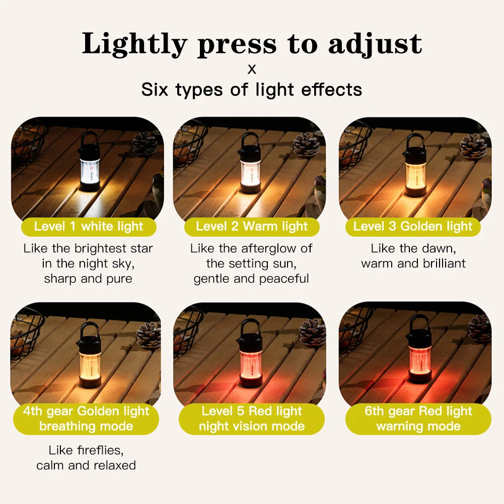 Product Name: RHL4 Mini Camping Light Battery life: 5-40H Product weight: 59g (single lamp) Product size: ф 32mm * H96mm Battery Type: Lithium Battery Battery capacity: 1200mAh Product Material: Alloy Material, ABS Silicone Stainless Steel Product brightness: 200-10 lumens