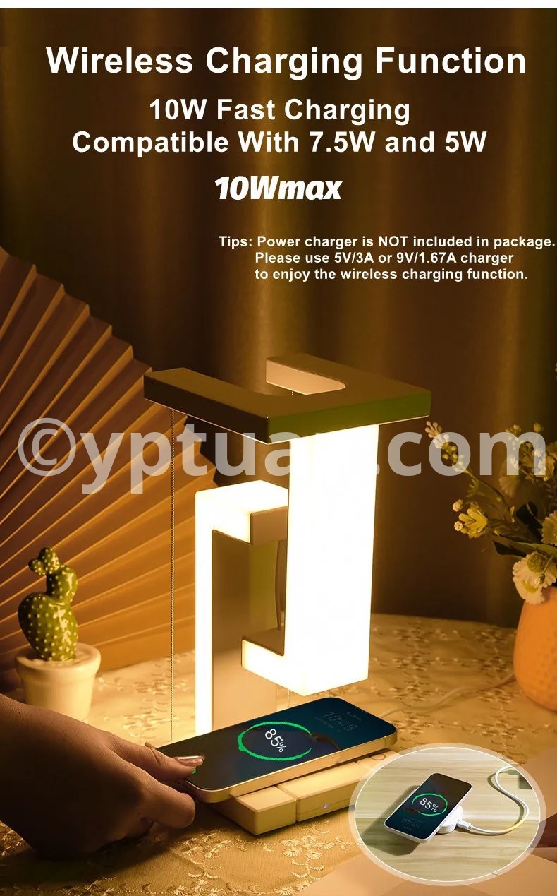 Novelty floating lamp with 10 W detachable wireless charger decorative light for bedroom/office