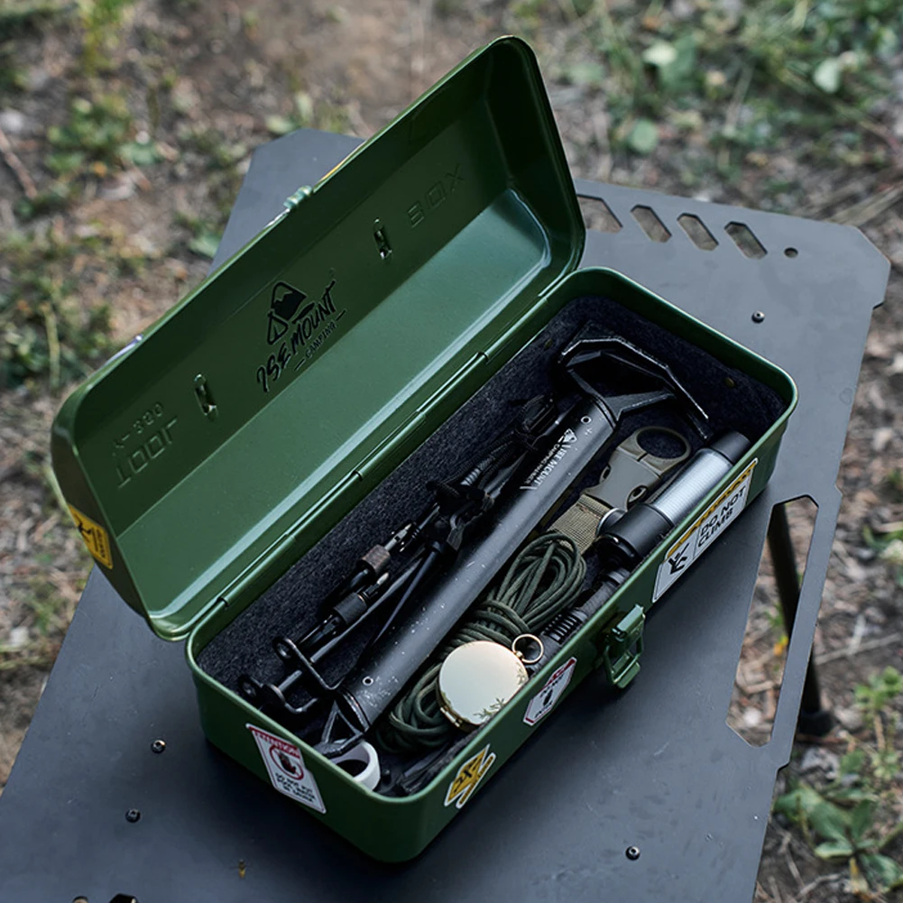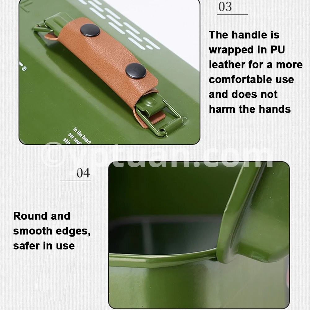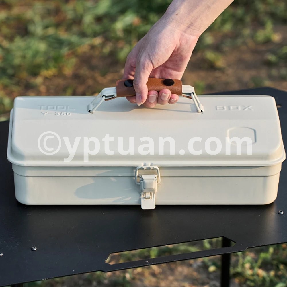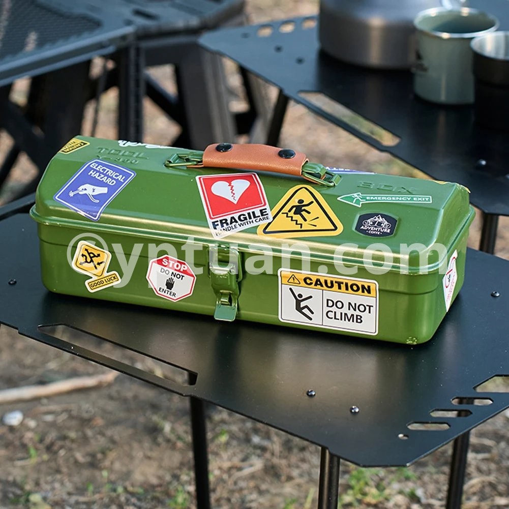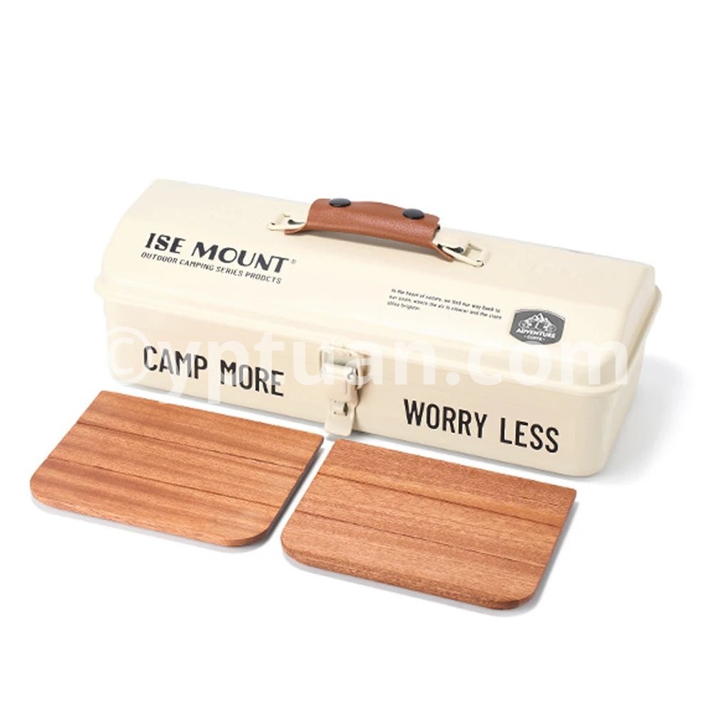This is an iron storage box, sturdy and wear-resistant, with a handle for easy carrying. The interior is lined to protects the items inside, making it perfect for outdoor use.