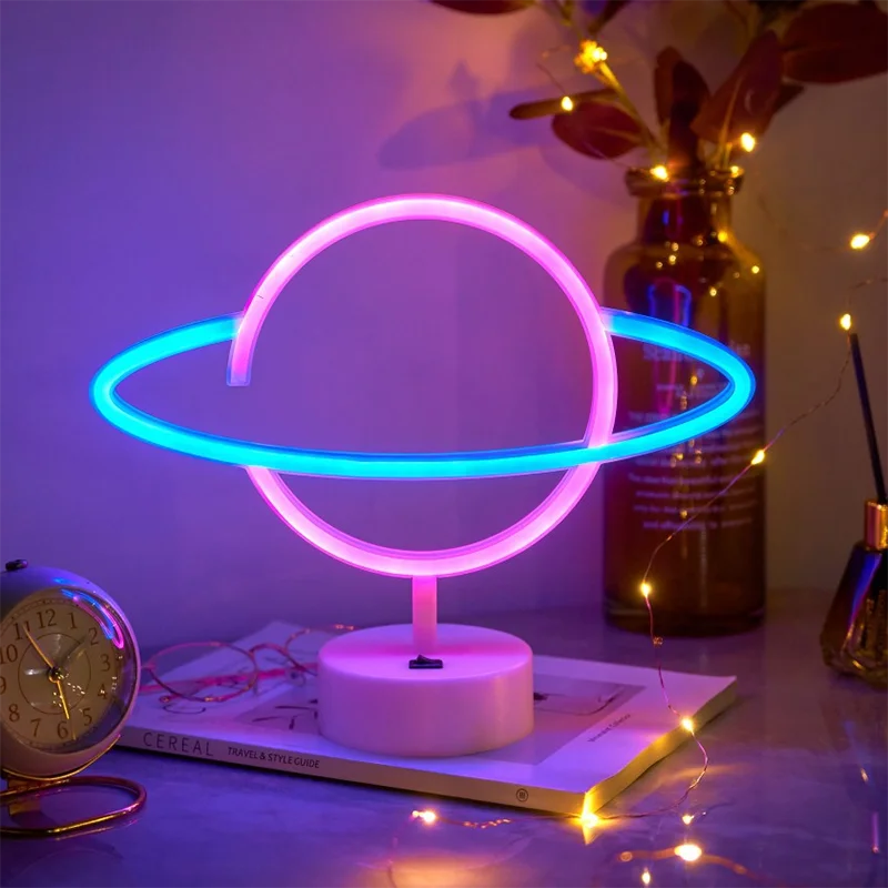 Party Room Neon Lamp Elliptical planet Shaped earth LED Sign Neon Light Battery Home Decorative Wall Light Christmas Lighting