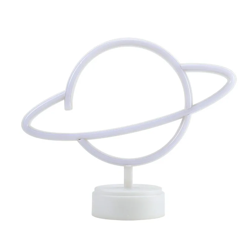 Feature Beautiful and modern decorative led neon lamp. Decoration for wedding, party, home, club, bar, shop. It offers a warm light and romantic atmosphere to your place. Optional ways to be placed:There is a hole behind the lamp, you can hang it on the wall,or place it on the table. Fast and easy to install. Perfect Gift for Valentine's Day, Christmas Day, New Year Day, Birthday Day, Etc. Specification Without stand style Type: Cute LED Neon Light Material: Plastic+LED Light Color:Warm White/ Pink/Blue Powered by: 3xAA Batteries (Not Included) or USB Powered Items Size planet with holder :30X24.5cm ; planet no holder:17X30 Stand style Type: Cute LED Neon Light Material: Plastic+LED Light Color:Warm White/ Pink/Blue Powered by: 3xAA Batteries (Not Included) Package Included 1 x LED Neon Light (Batteries not included)