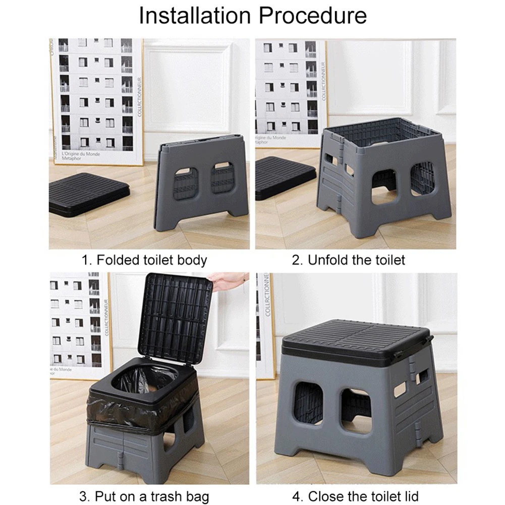 Portable Camping Toilet with Lid Portable Folding Toilet Multifunctional Foldable Outdoor Camp Toilet for Camping Travel Features: 1. Travel Essential: This portable camping toilet offers a convenient solution for restroom needs while outdoors or on long drives, providing the comfort of a portable lavatory experience anytime, anywhere. 2. Compact Storage: With its collapsible design, the portable folding toilet is easy to stow away, saving space and enhancing portability, perfect for all kinds of outdoor adventures and extended journeys. 3. Sturdy & Reliable: Constructed with high-strength materials, the travel portable potty is built to last, boasting a strong load-bearing capacity suitable for various environments. 4. Easy to Clean: The user-friendly design allows for quick and simple cleaning, this foldable outdoor camp toilet ensuring hygiene and a clean use every time, maintaining personal health and comfort. 5. Versatile Use: More than just a toilet, this outdoor toilet seat serves multiple purposes including a storage container, outdoor seating, or even a trash can, meeting a variety of needs and increasing its functional value. Specification: Origin: Mainland China Main Material: PP5 Color: Gray Size: Approx. 37cm (14.57in)*30.5cm (12.01in)*30cm (11.81in) Net Weight: Approx. 1200g Note: Due to different monitor settings and lighting conditions, the actual color of the item may vary slightly from the pictures. Thanks for your understanding! Please allow a 1-2 cm difference in measurements due to manual measuring.
