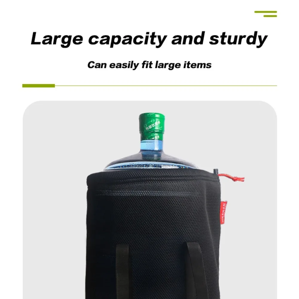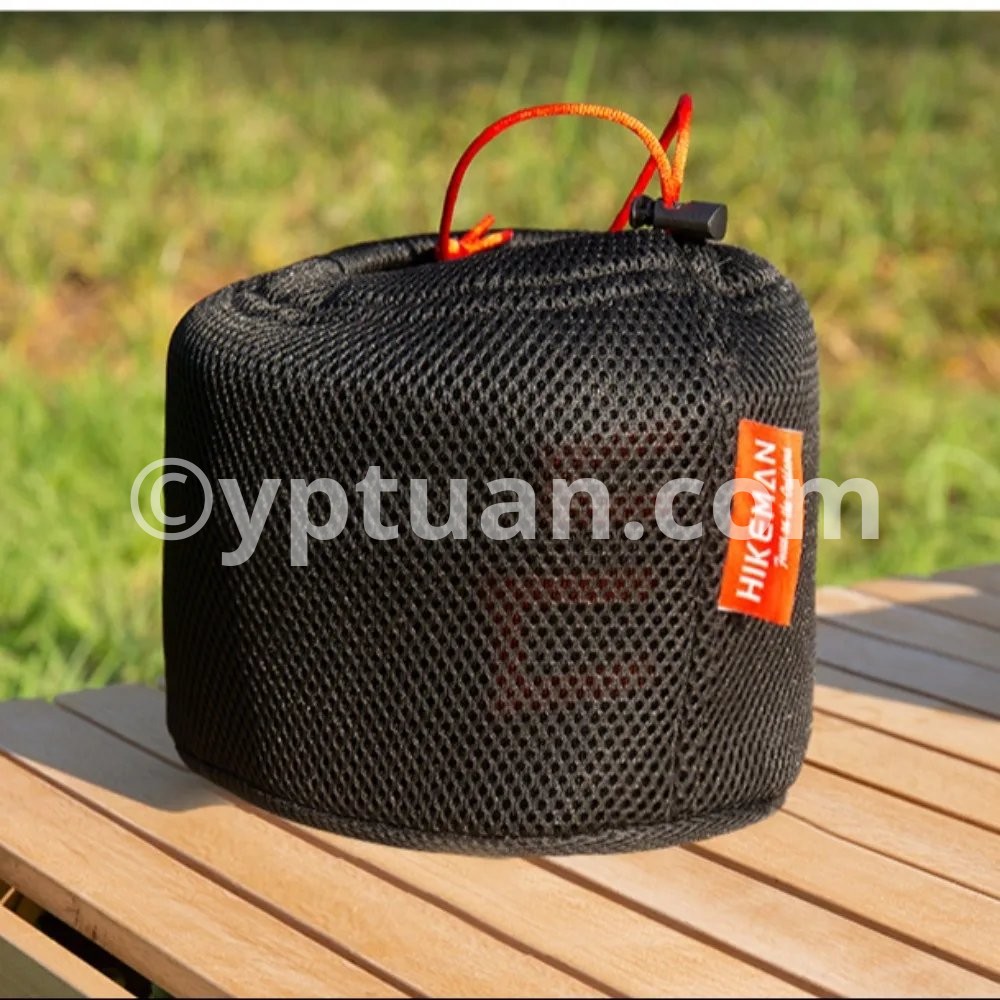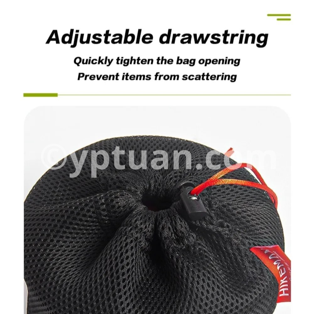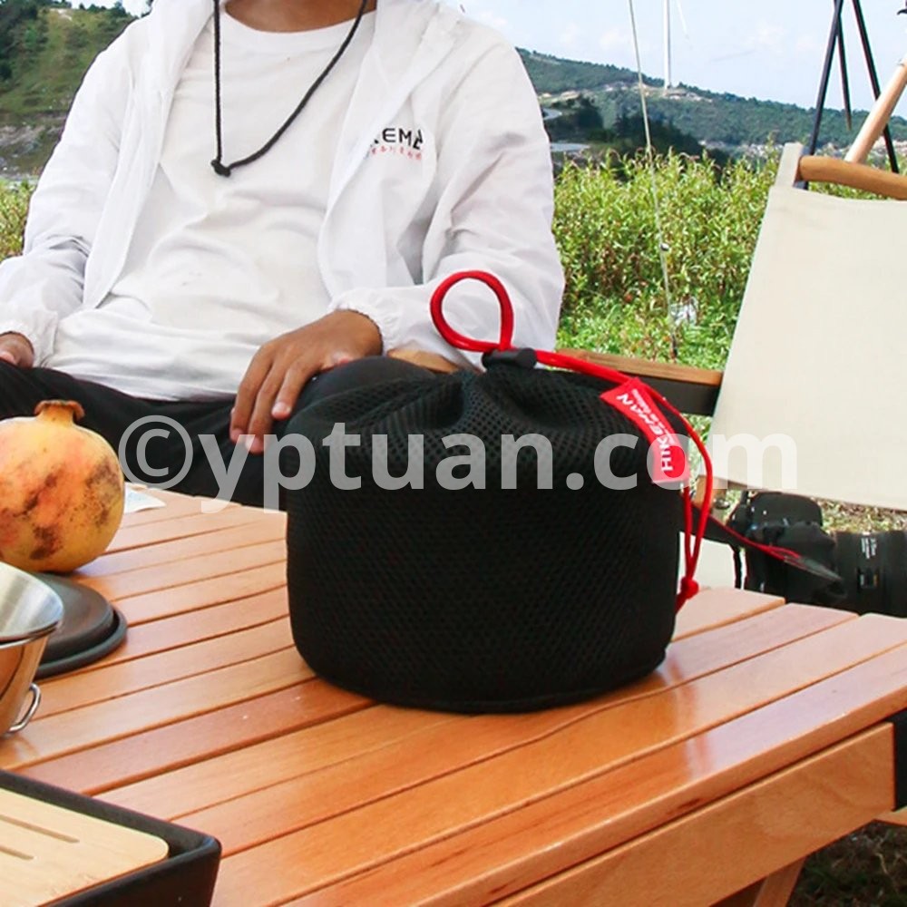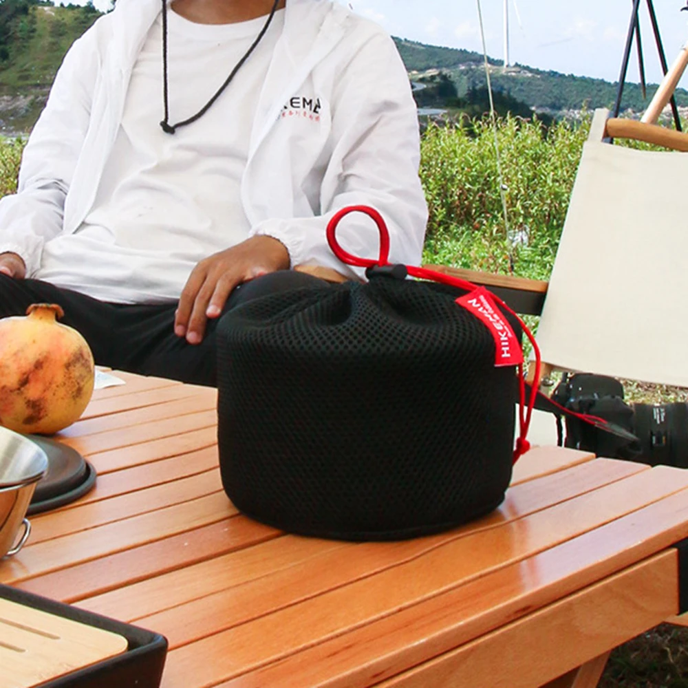 Material: Mesh Dimensions: As indicated in the diagram Color: Black Quantity: 1Pcs Name: Camping set pot storage bag The packaging includes: 1 * Camping storage bag Features: This is a storage bag suitable for outdoor camping supplies, which comes in many sizes for you to choose from. It adopts sandwich mesh fabric, which is sturdy and durable, has good collision resistance, and has good elasticity. The bag opening has a rope that is easy to pull and tighten. It can be used to store stoves, pots, and tableware, making them less prone to scratches and avoiding paint peeling or breakage. Of course, you can also use it to store any items worth protecting.